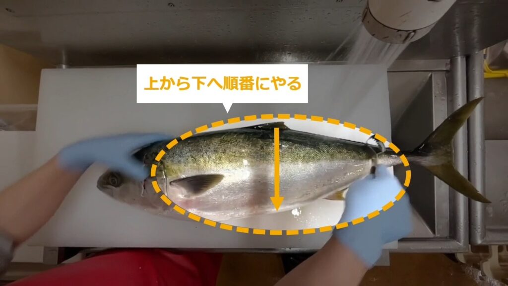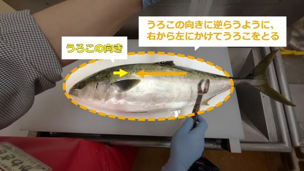 ぶりのうろこの取り方 ぶりのうろこの取り方を説明します。STEP1:通し動画STEP2~:手順の詳細 STEP1:【通し動画】ぶりのうろこの取り方 STEP2:うろこかきを使う STEP3:水を流しながらうろこをとる STEP4:頭が左側に来るように置く STEP5:うろこの向きに逆らうように右から左にかけてうろこをとる STEP6:上から下へ順番にやる STEP7:ひれの裏などに取り残しがないように気を付ける STEP8:片面が終わったら、ひっくり返し同様に右から左にかけて取る STEP9:うろこを取り終えたら水で流す