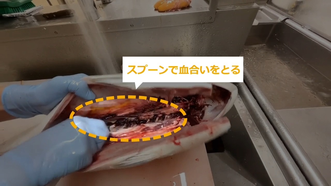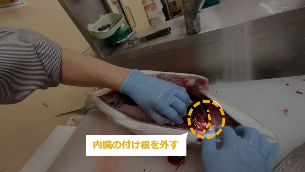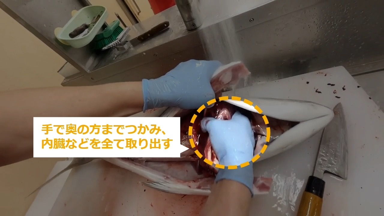 STEP10:手で奥の方をつかみ、内臓などを全て取り出す