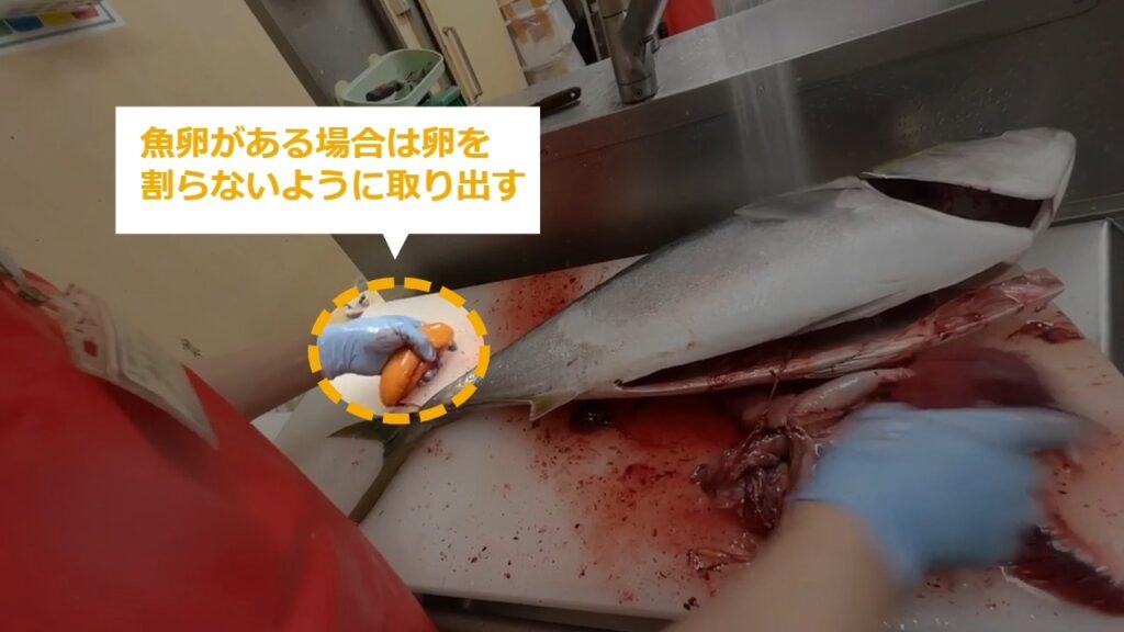 STEP11:魚卵がある場合は卵を割らないように取り出す