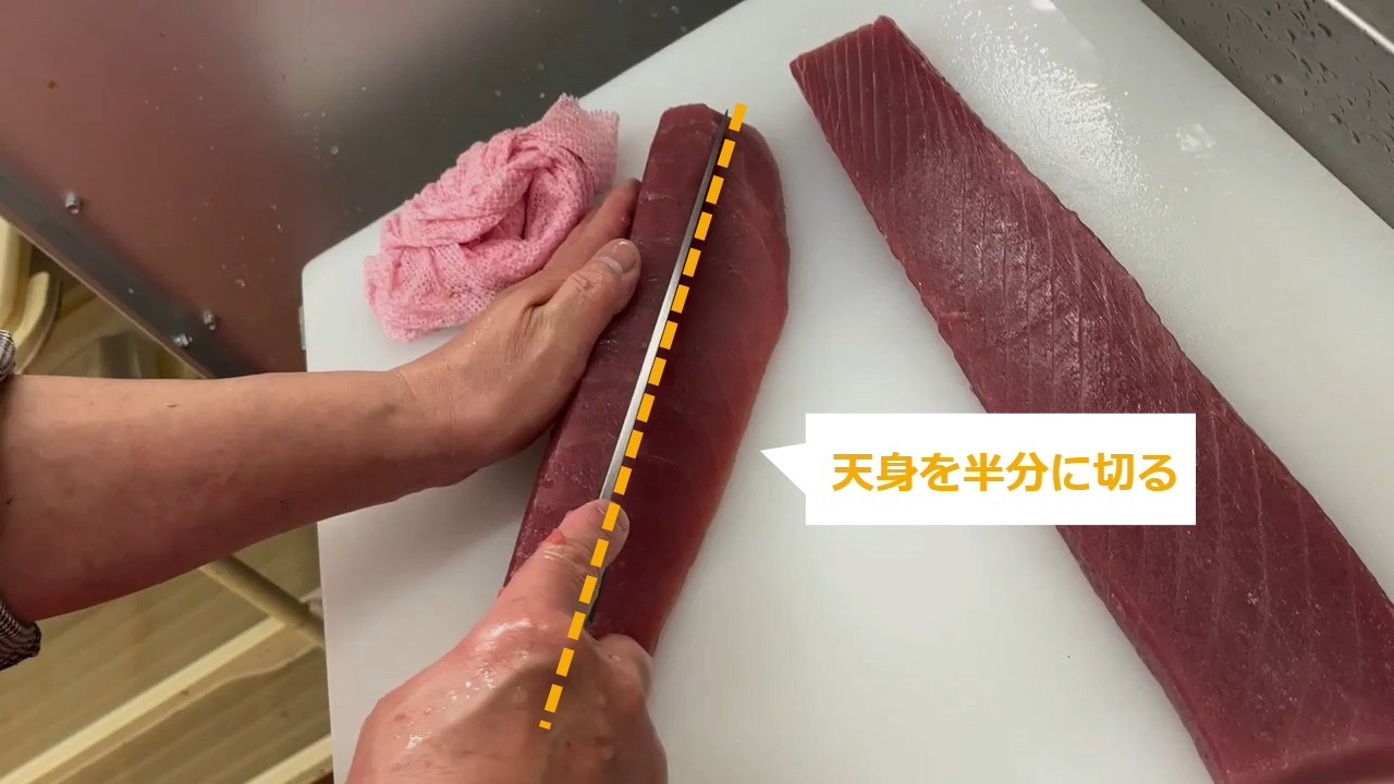 「天身」とは、マグロの背骨の周りにある赤身の部位です。