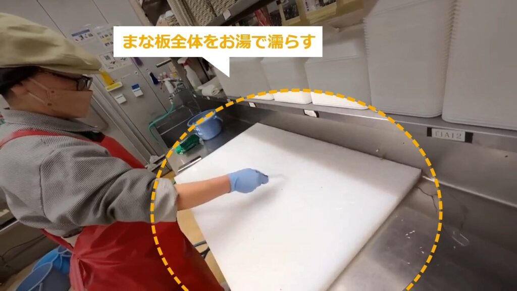 STEP4:まな板全体をお湯で濡らす