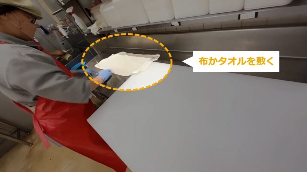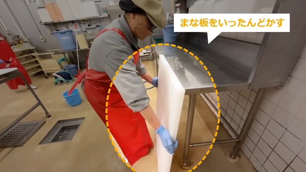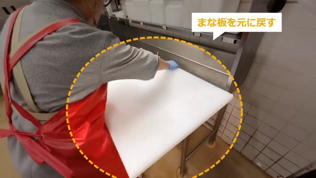 STEP15:作業台の水気を落とす(3/3):まな板を元に戻す