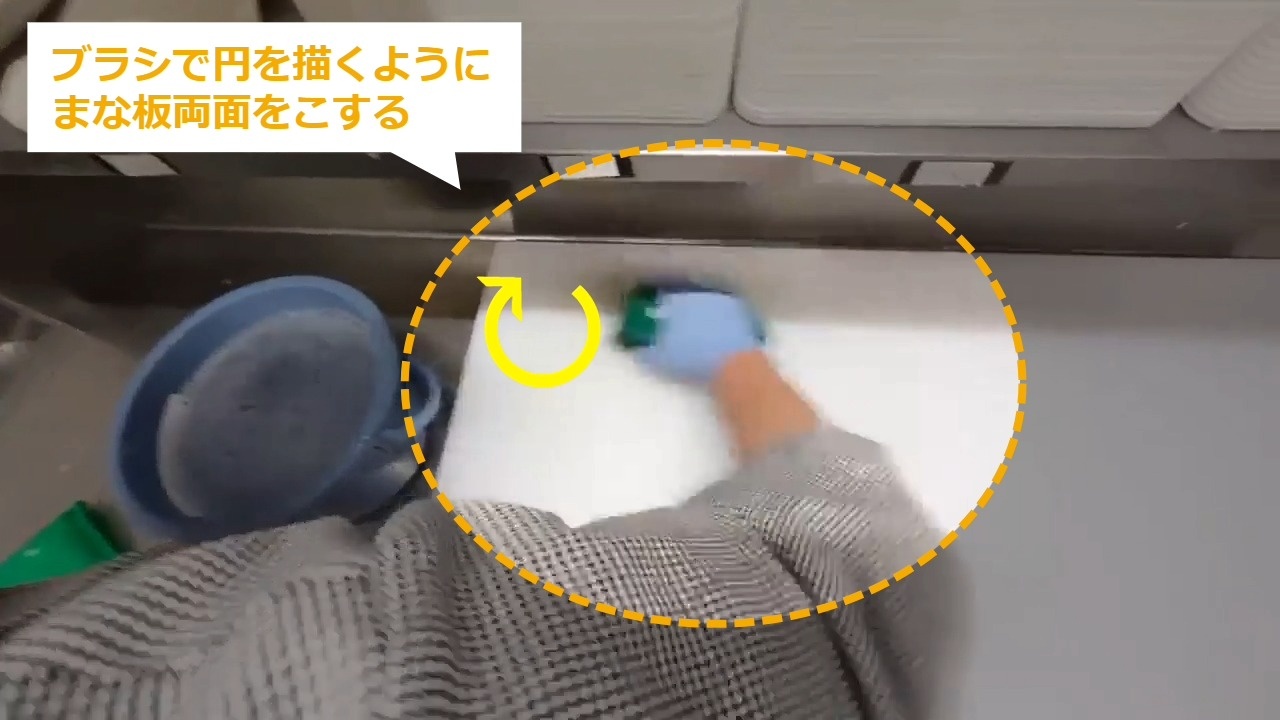 全作業が終了した後のまな板の清掃方法を説明します。 STEP1~:使用道具について STEP2~:通し動画 STEP4~:詳細な手順