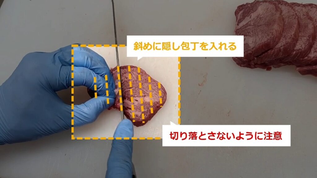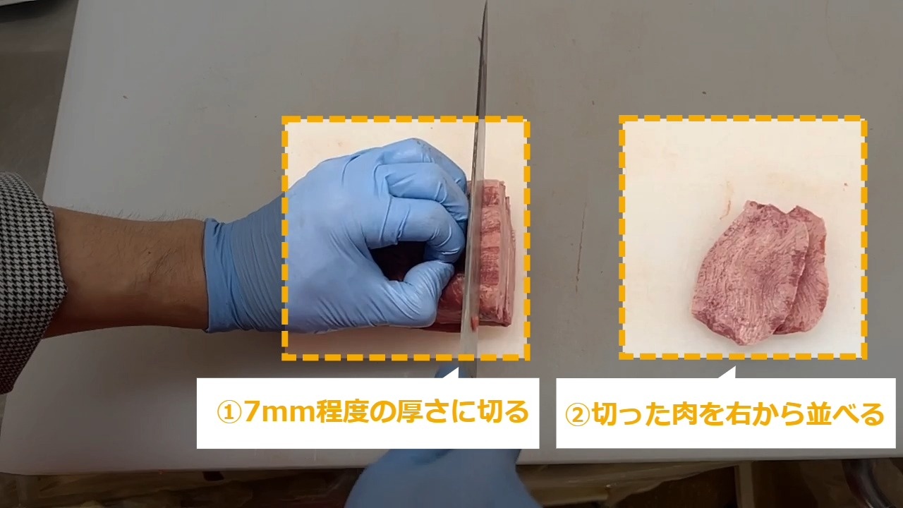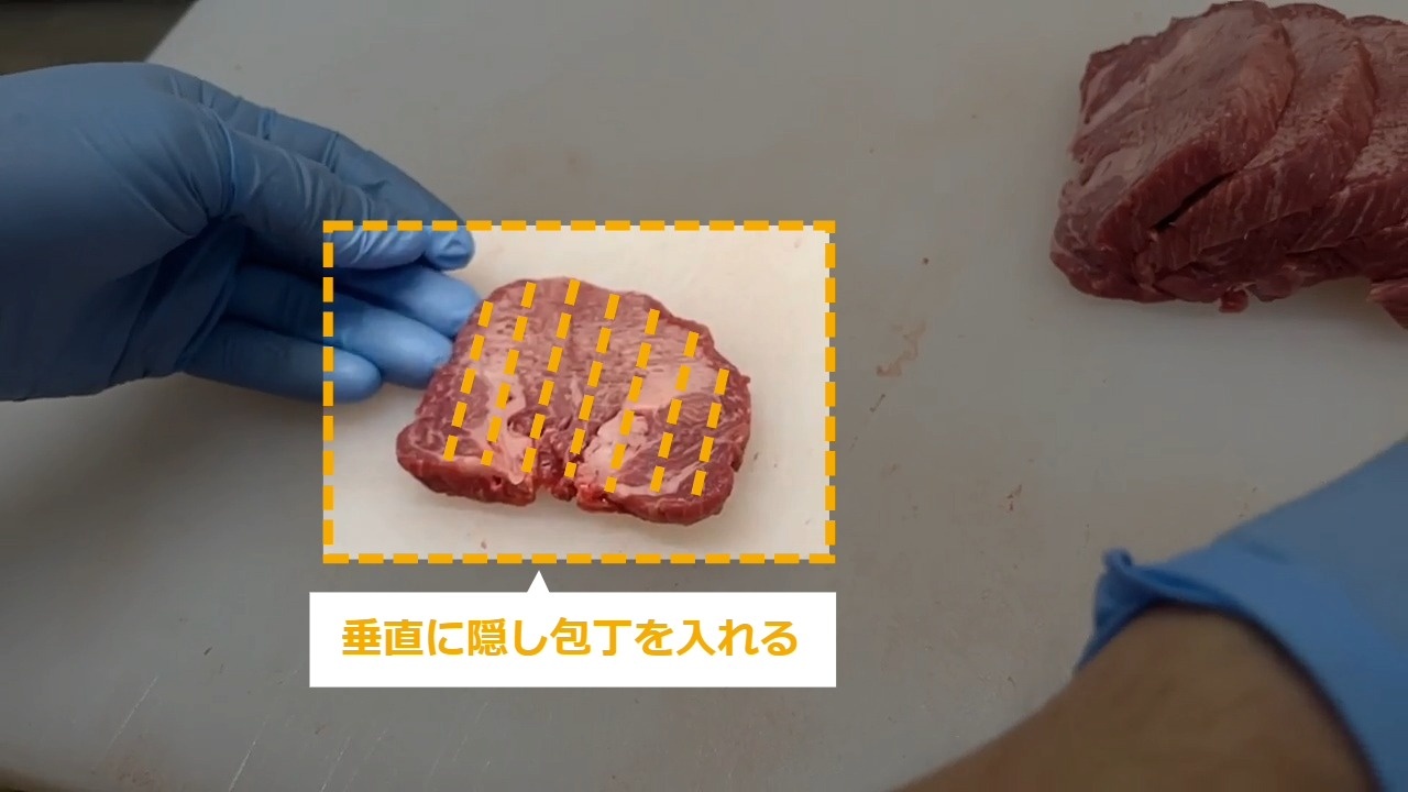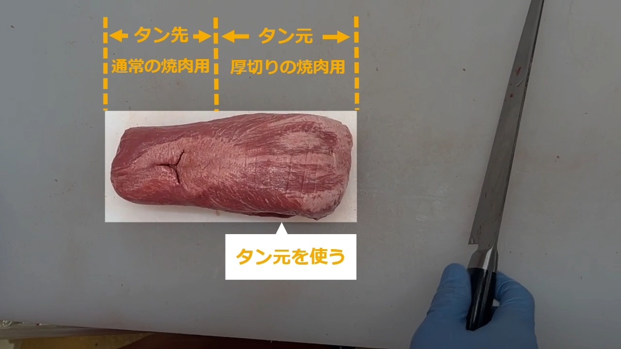 ・アメリカ牛タンの厚切り焼肉(ダイヤモンドカット)について説明します。