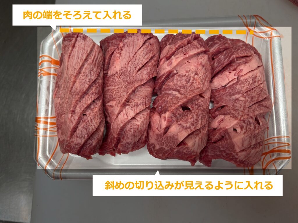 ・斜めに切れ目を入れた面が見えるようにトレーに入れます。