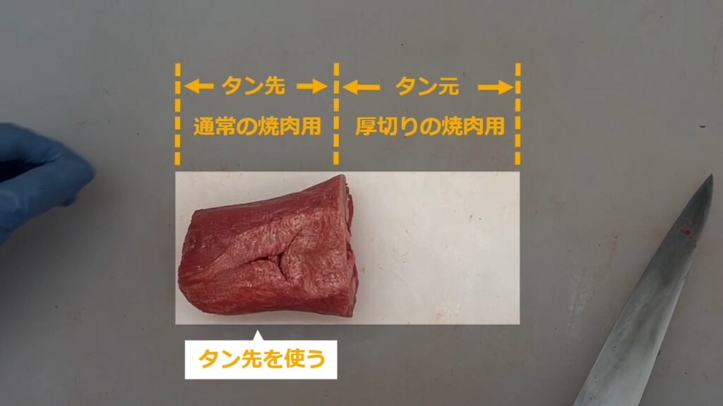 ※タン元は柔らかいので、厚切りの焼肉として使用します。