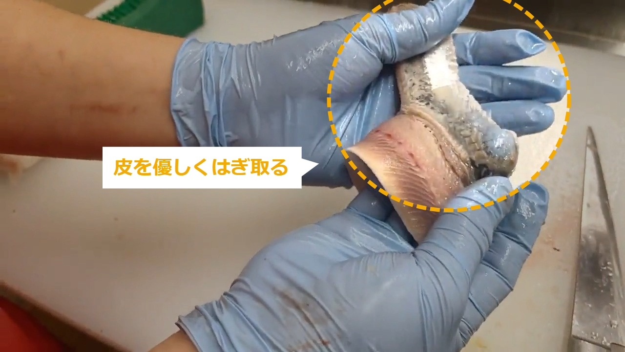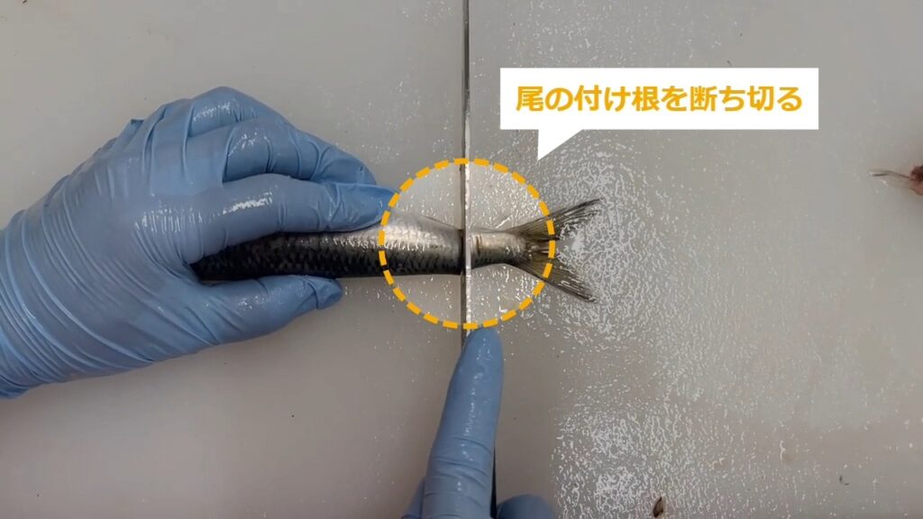 STEP1:【通し動画】イワシの尾引きの方法