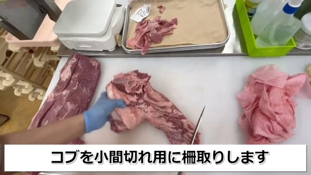 ・STEP1【動画】ポイントのトリミング(牛肉小間切用)
