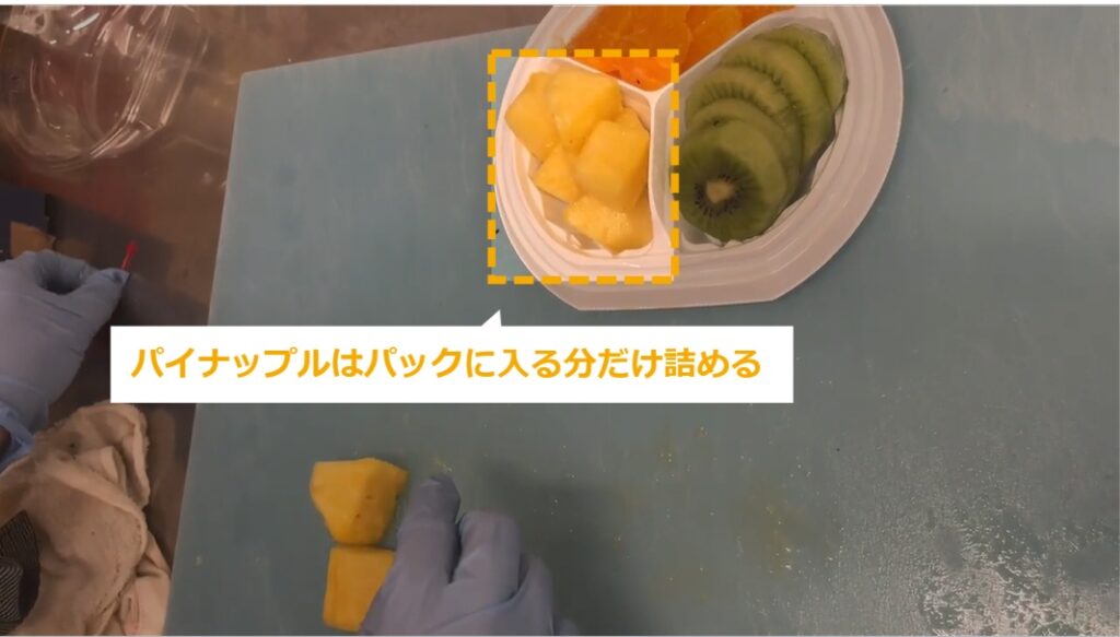 STEP6:イナップルはパックに入る分だけ詰める