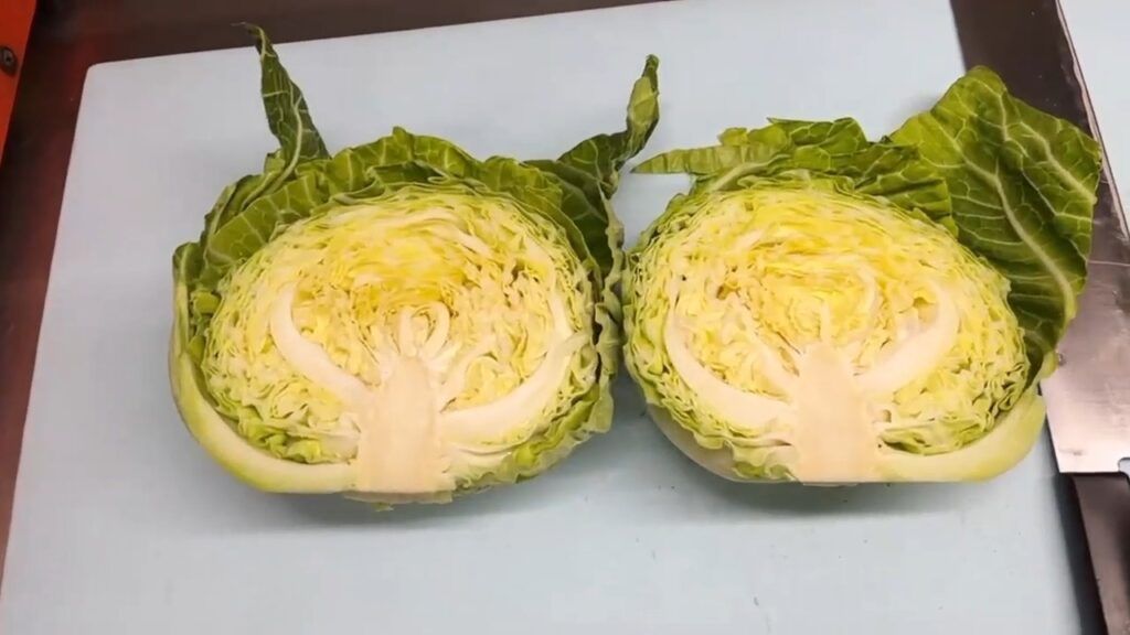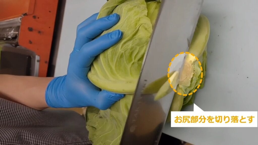 STEP2:【通し動画】キャベツの商品化(1/2玉、1/4玉)