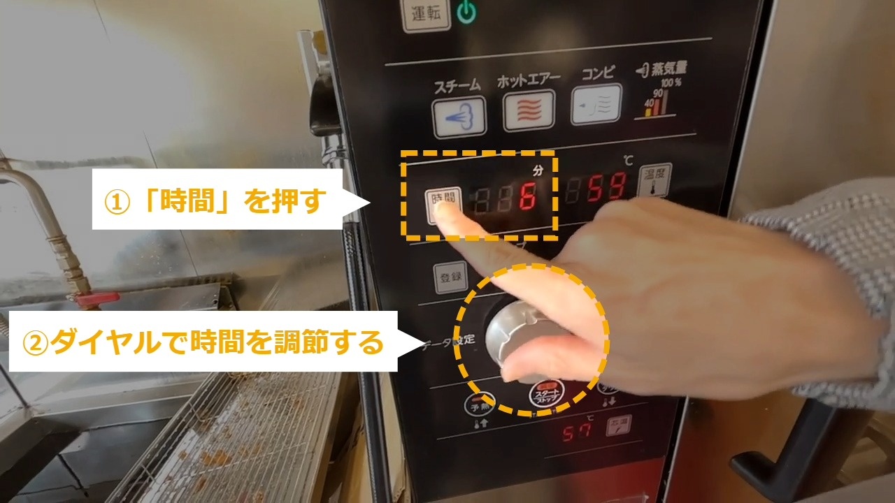 ・蒸気量、加熱時間、温度を設定する