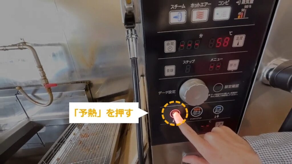 スチームコンベクションオーブンを使う際の基本的な流れは以下の通りです。