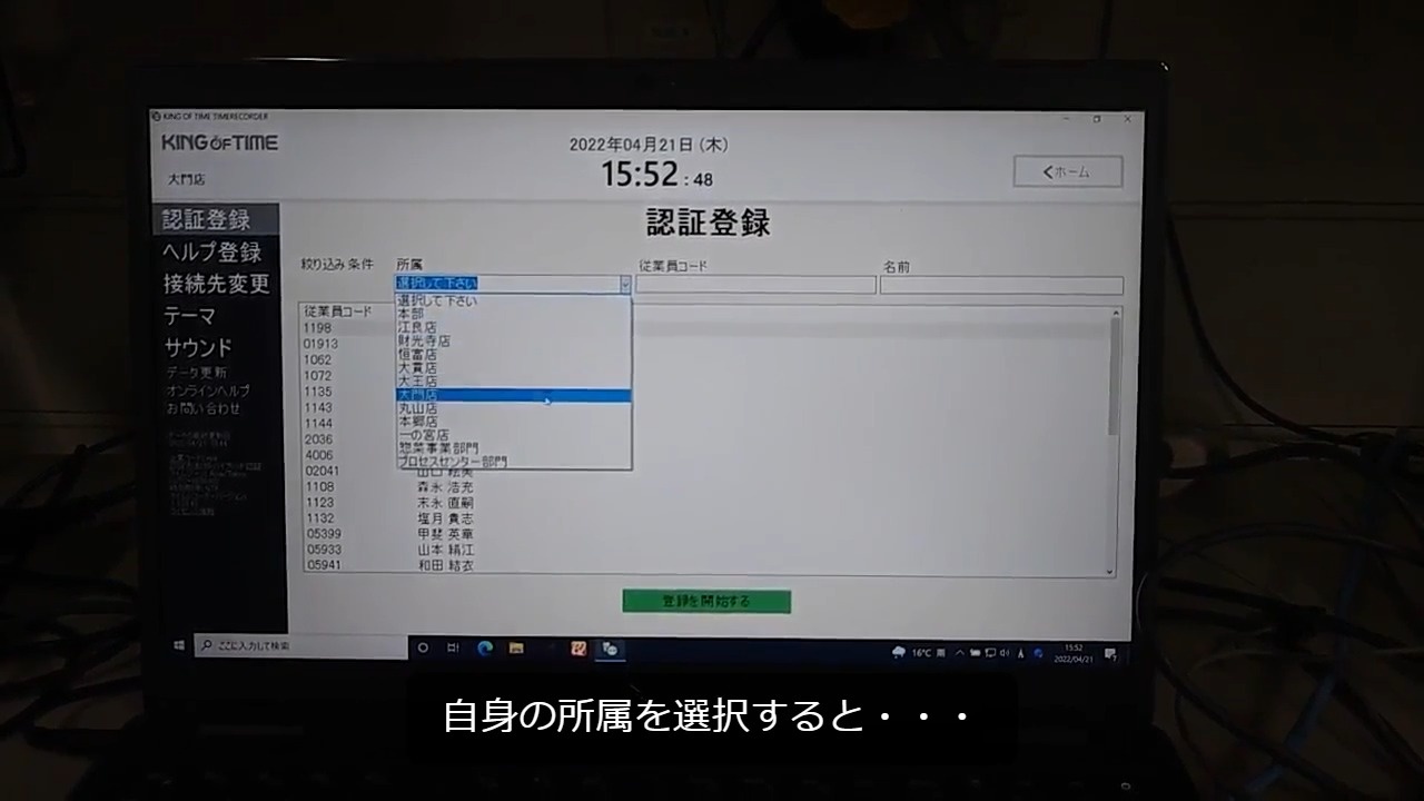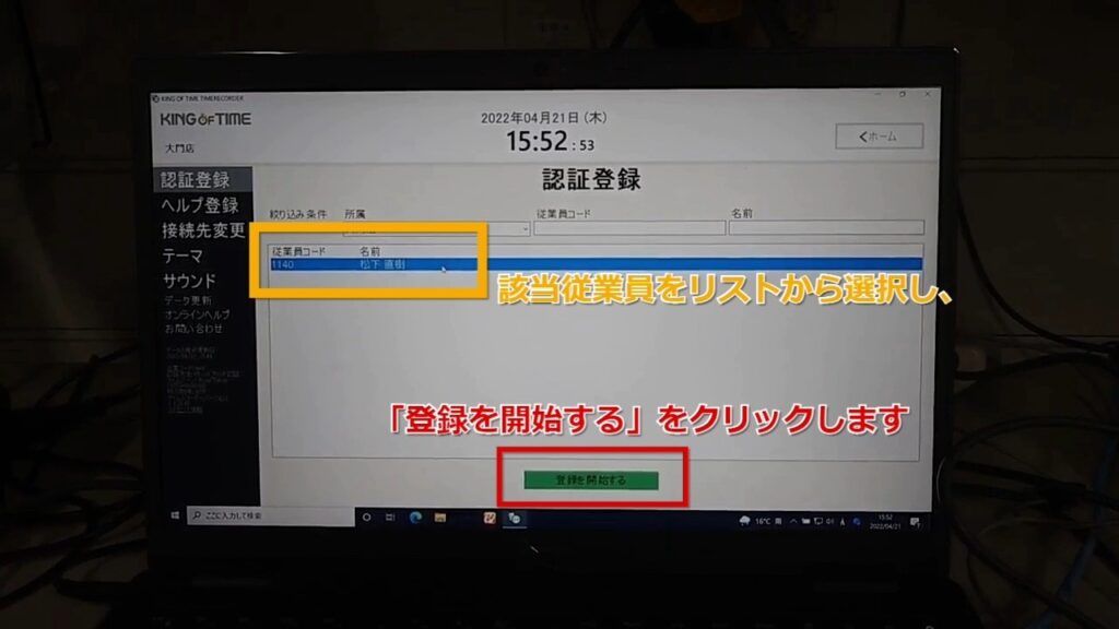 STEP6:【静止画】登録を受ける人の氏名を選択し、「登録を開始する」をクリック