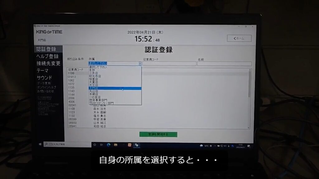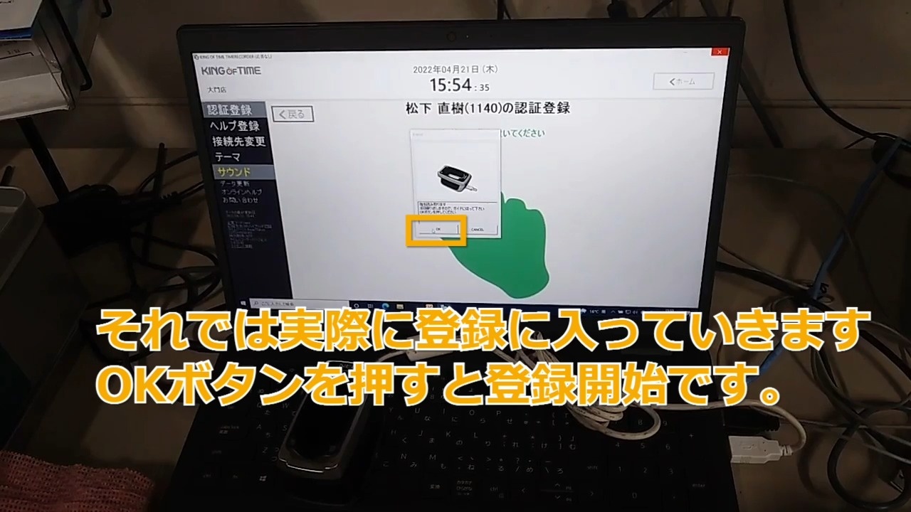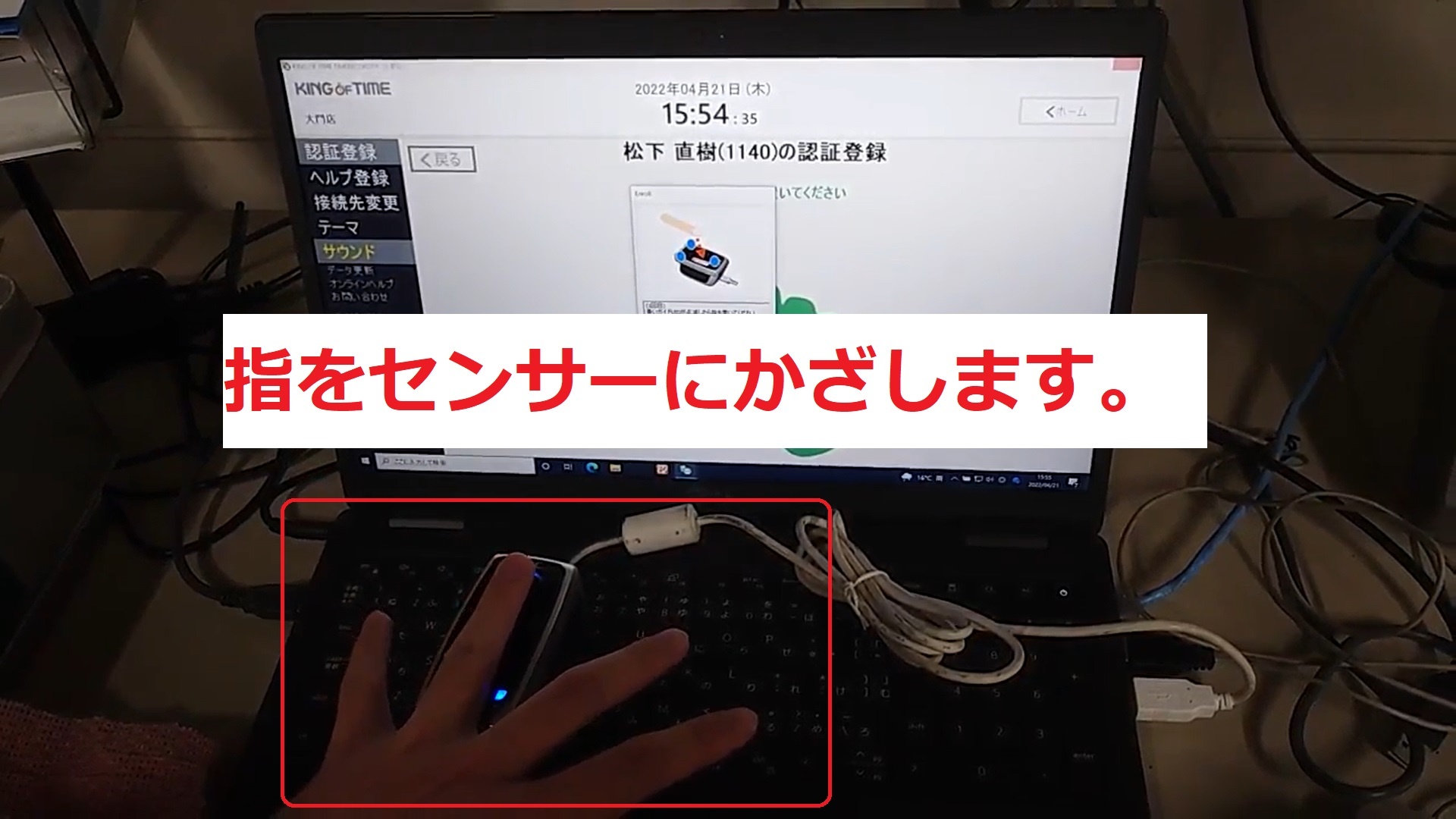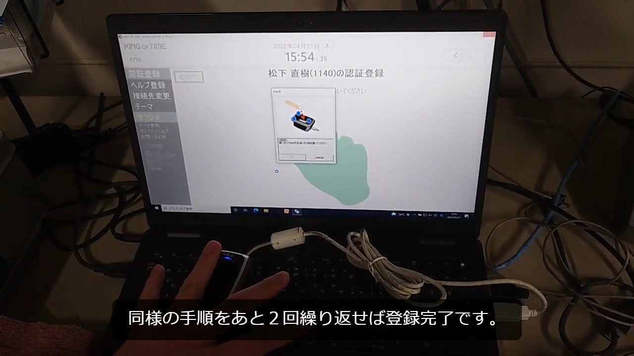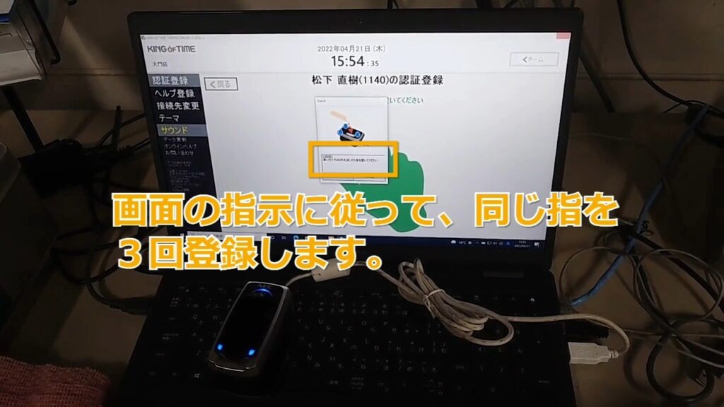 タイムカードへの指登録方法