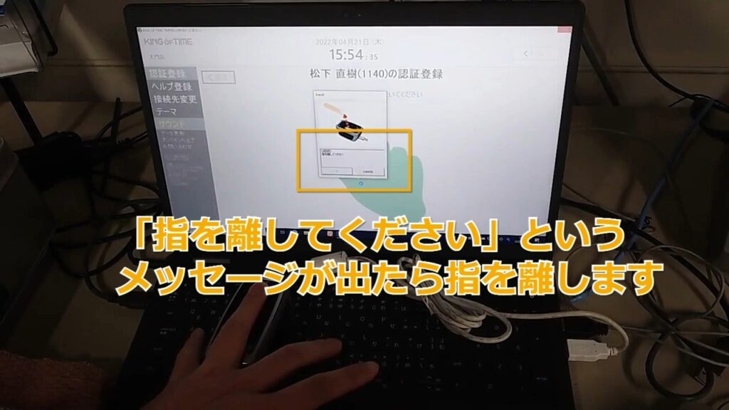 STEP13:【静止画】「指をはなしてください」というメッセージが出たら指を離します。