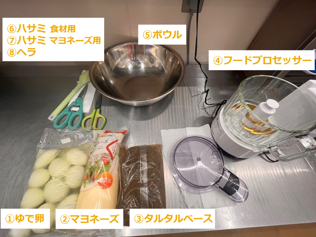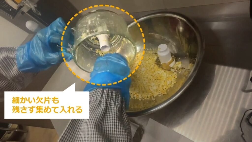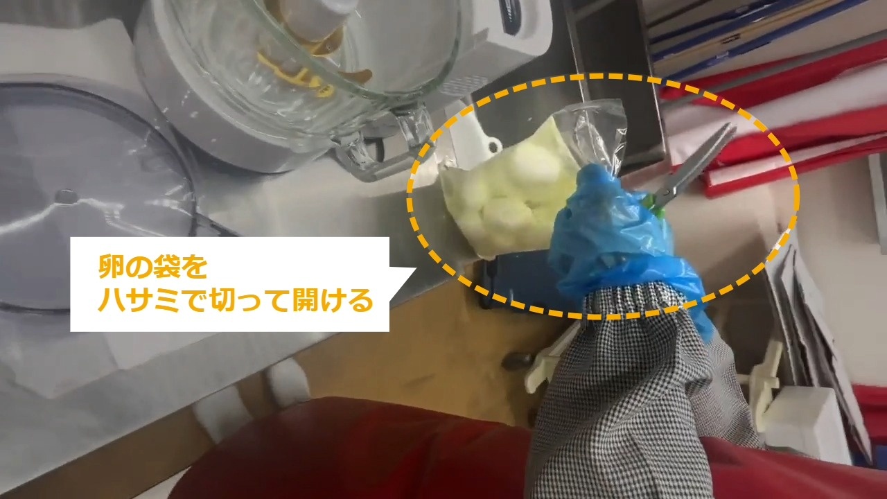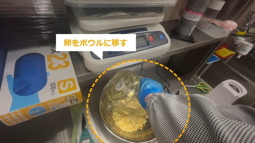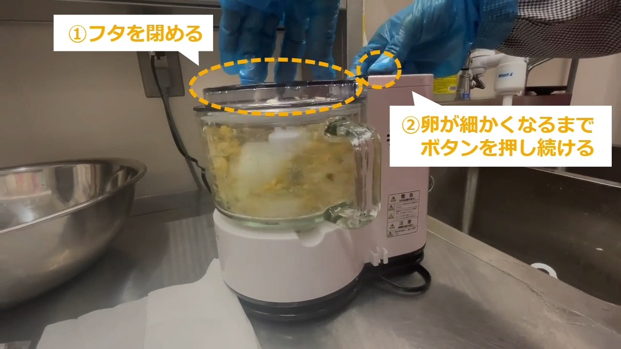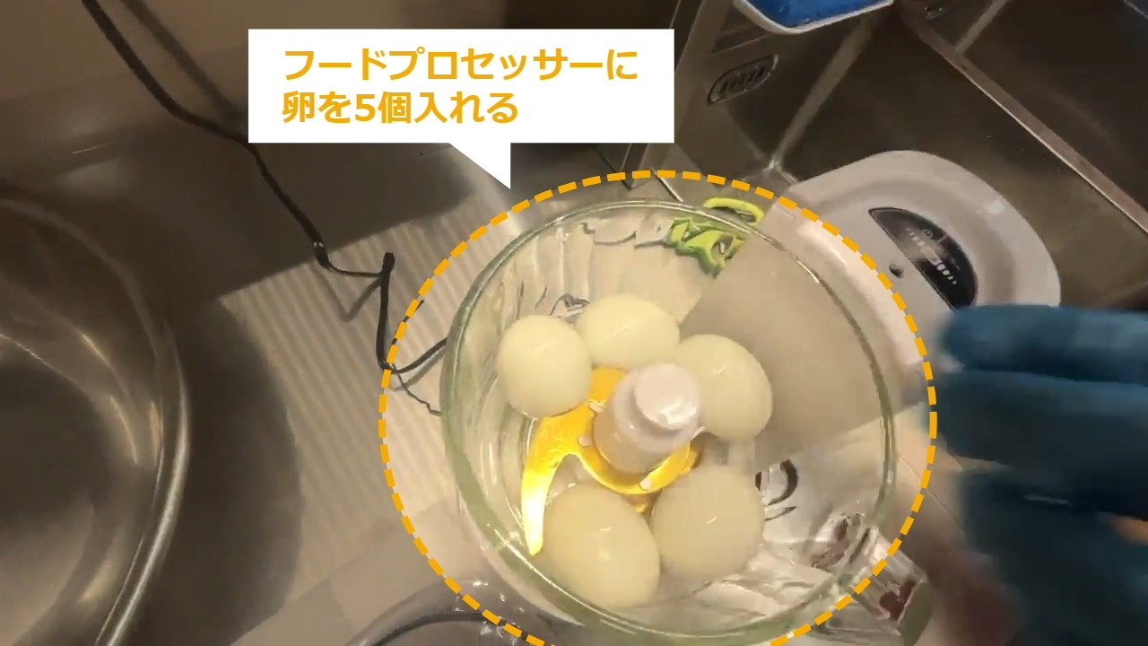➁卵をフードプロセッサーで砕き、ボウルに移す