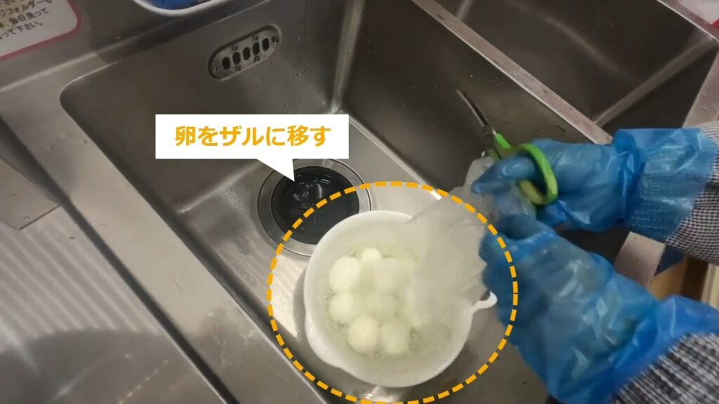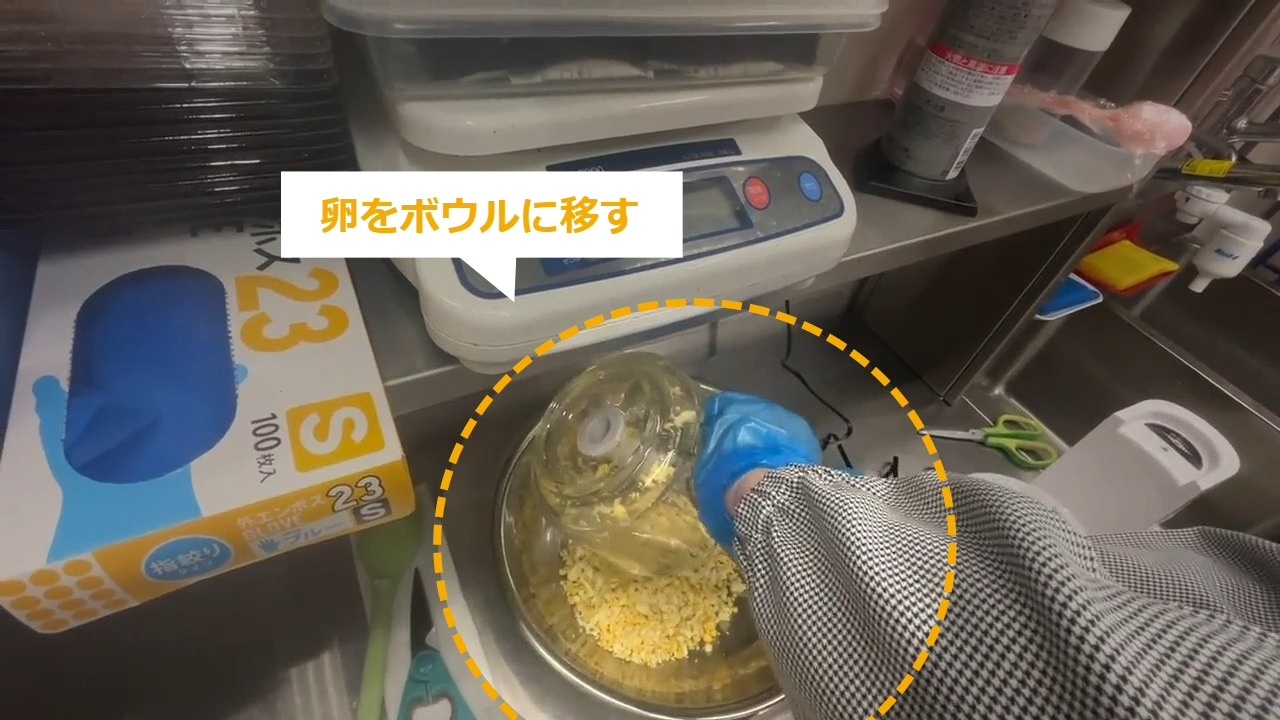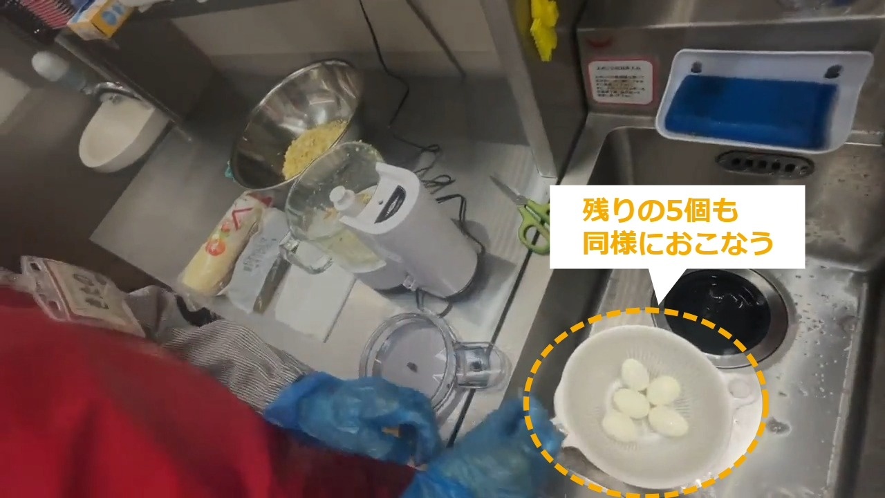 残りの5個の卵も、 STEP5~7と同様の手順で細かく砕き、ボウルに移します