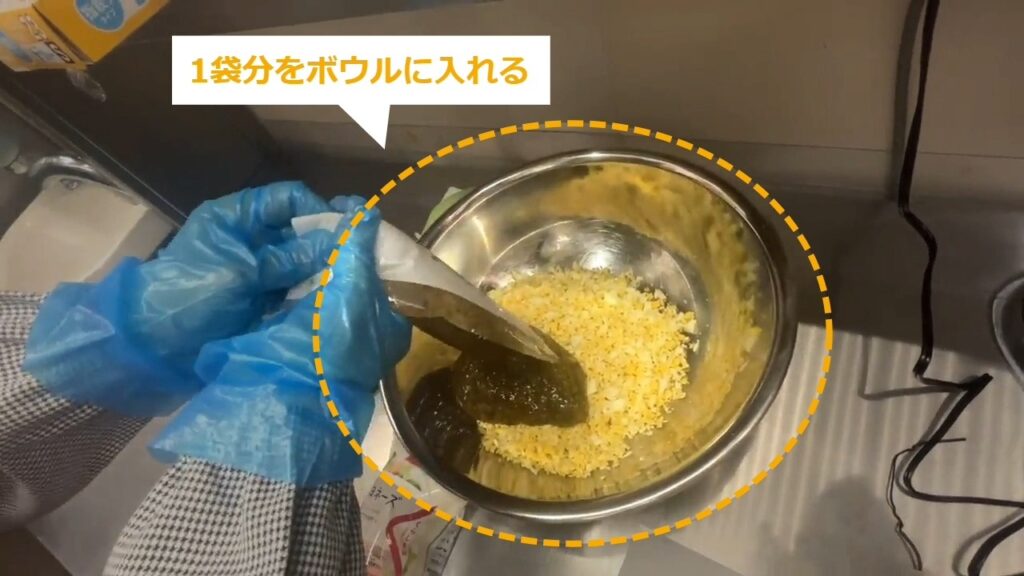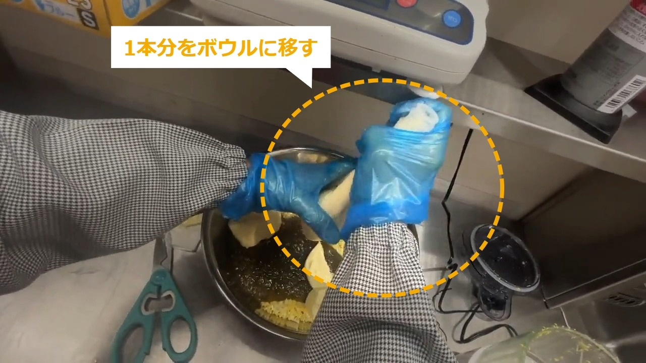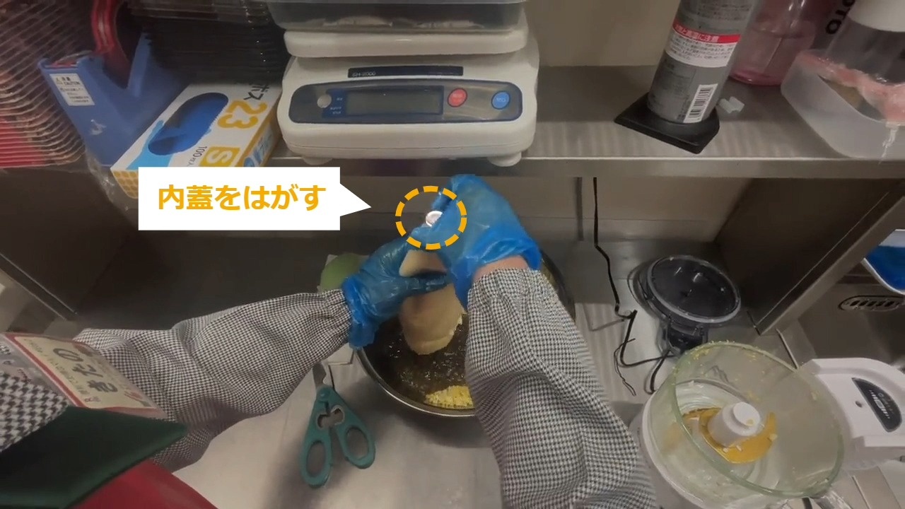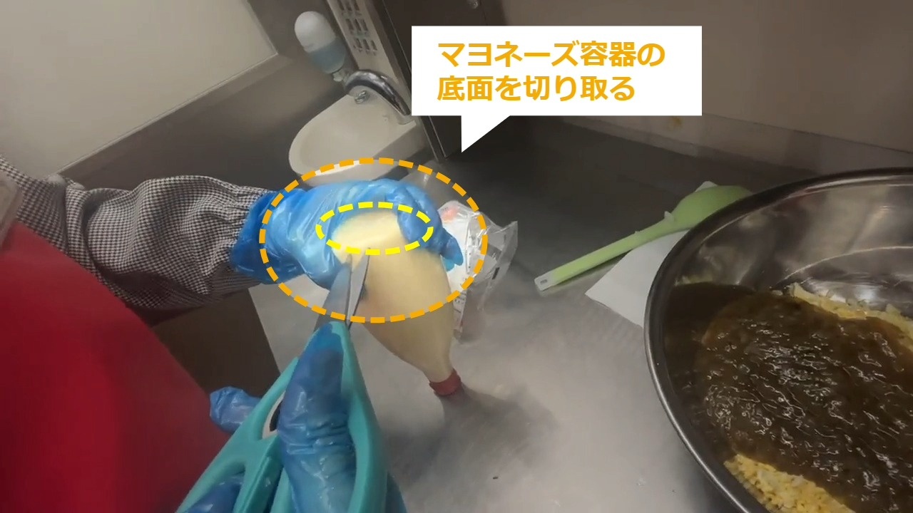 STEP16:切り取った底面に付いたマヨネーズも入れる