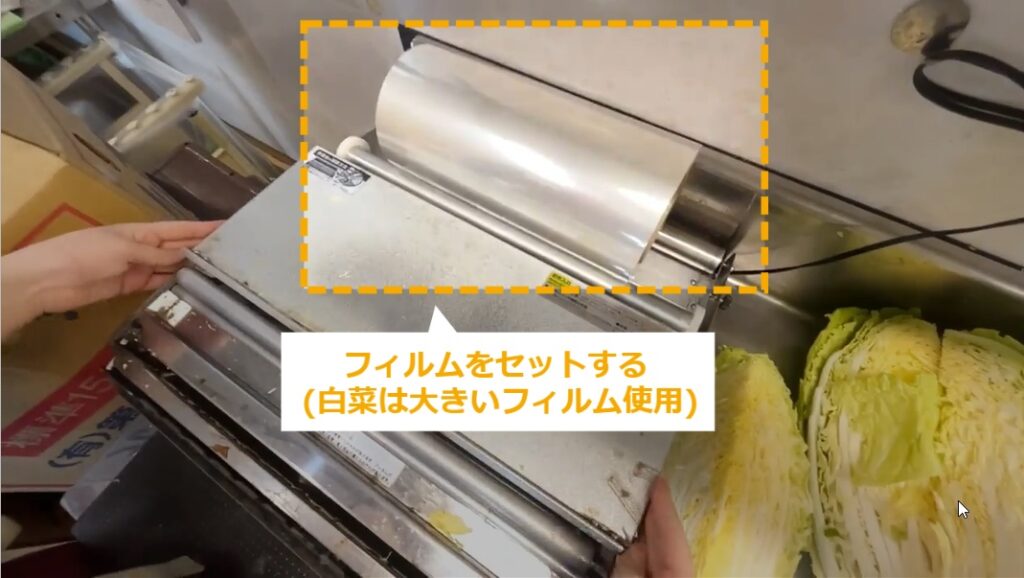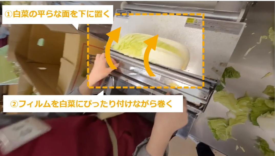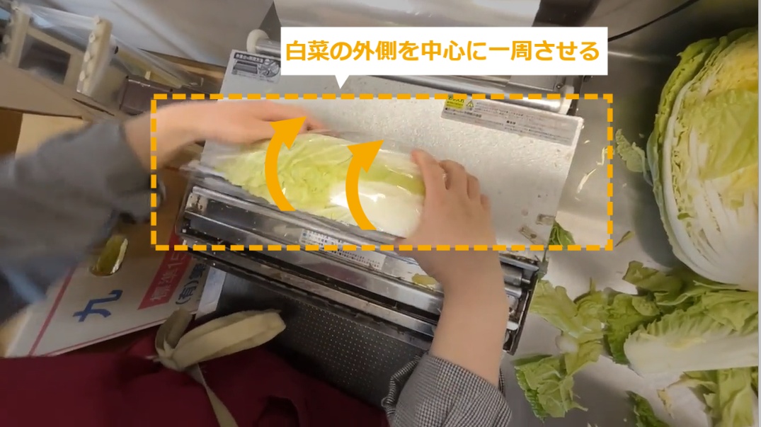 STEP9:フィルムのつなぎ目が白菜の外側になるようにする