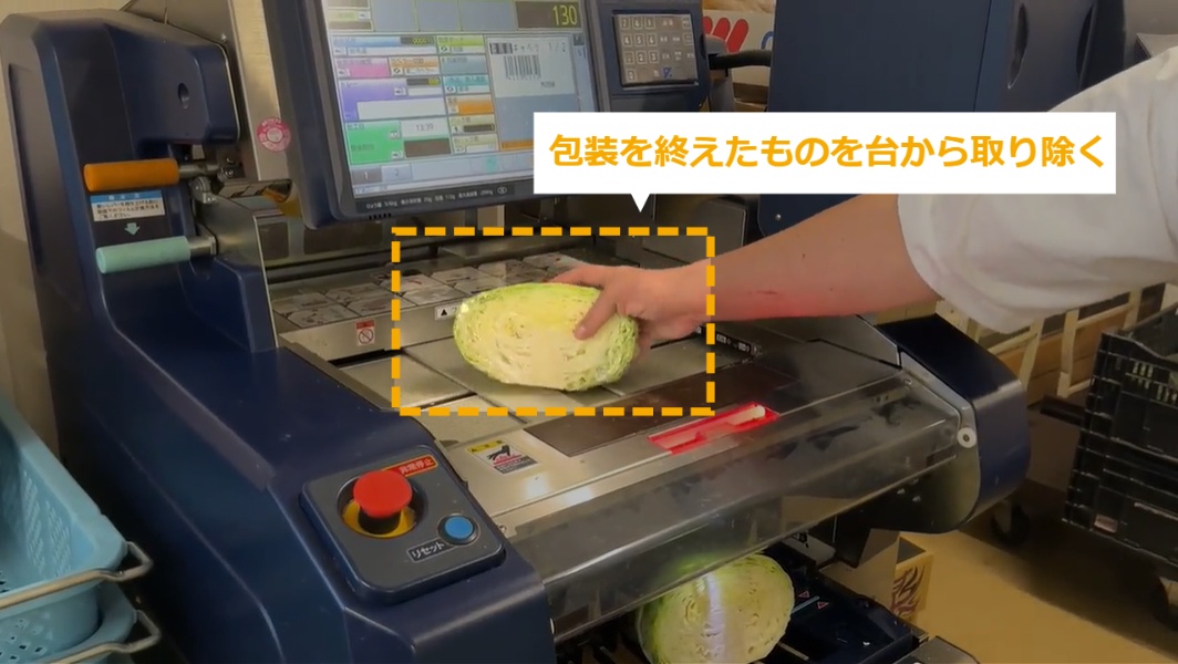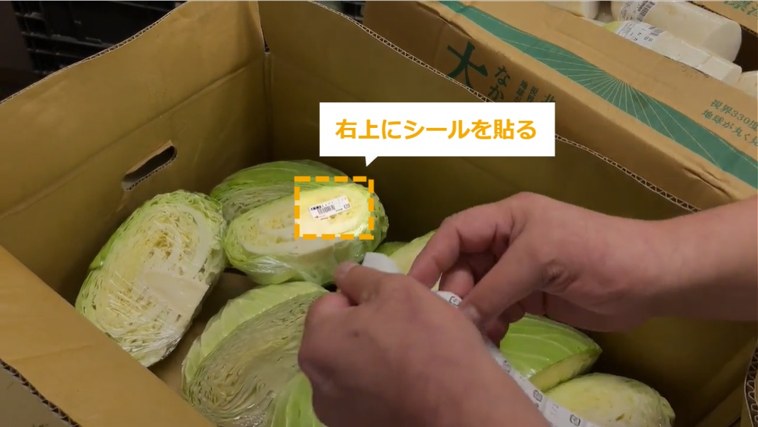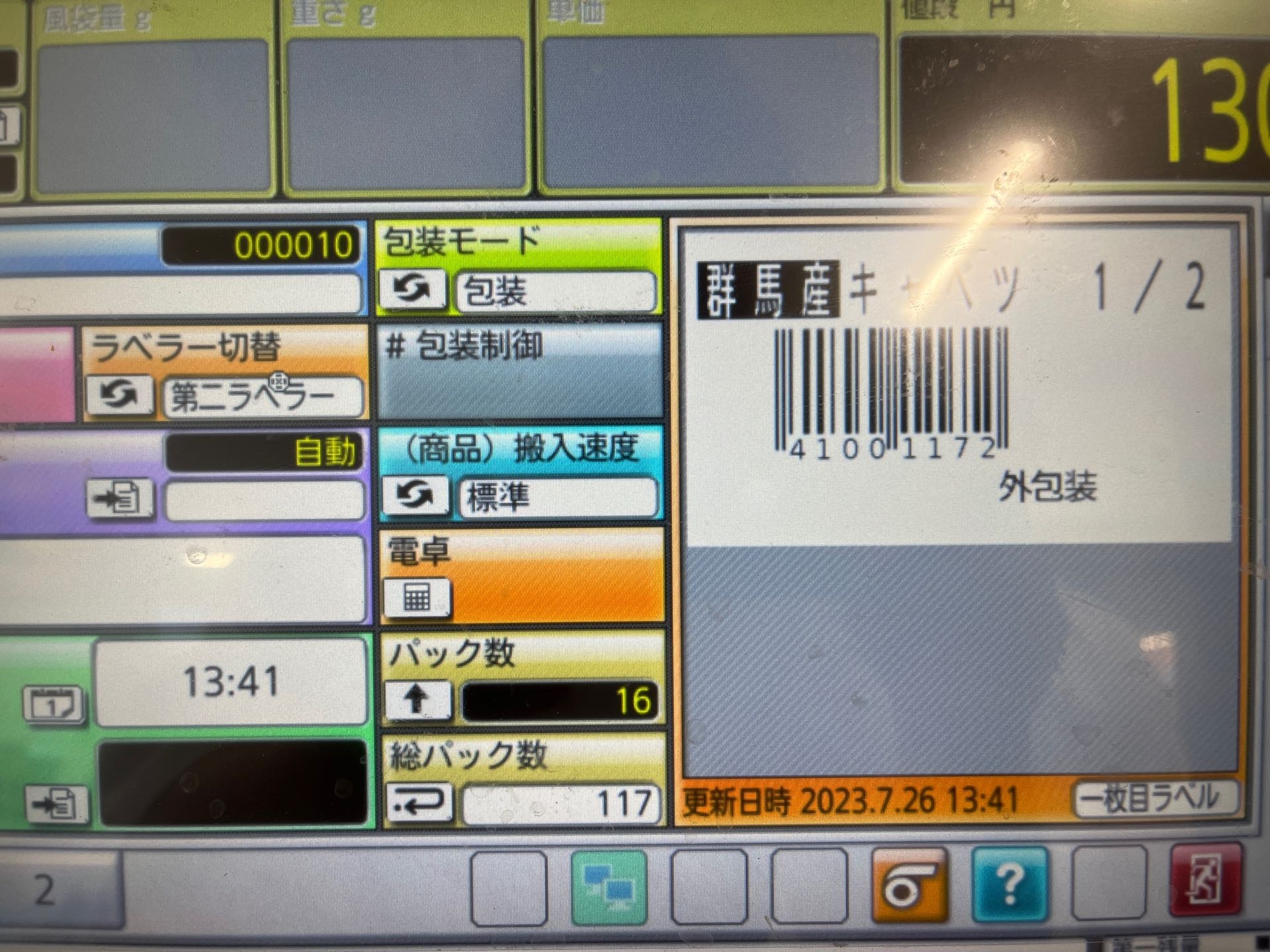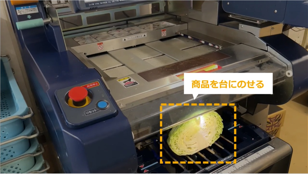 プリンターの使い方〜バーコードシール〜 STEP1:【動画】プリンターの使い方 STEP2:品番を入力し、「品番」を押す STEP3:正しく表記されているか確認する STEP4:「値付け」を選択し、枚数を入力後「!」を押す STEP5:シールが発行される STEP6:「包装」を選択する STEP7:商品を台にのせる STEP8:包装される STEP9:包装を終えたものを台から取り除く STEP10:右上にシールを貼る STEP11:【画像】作成画面