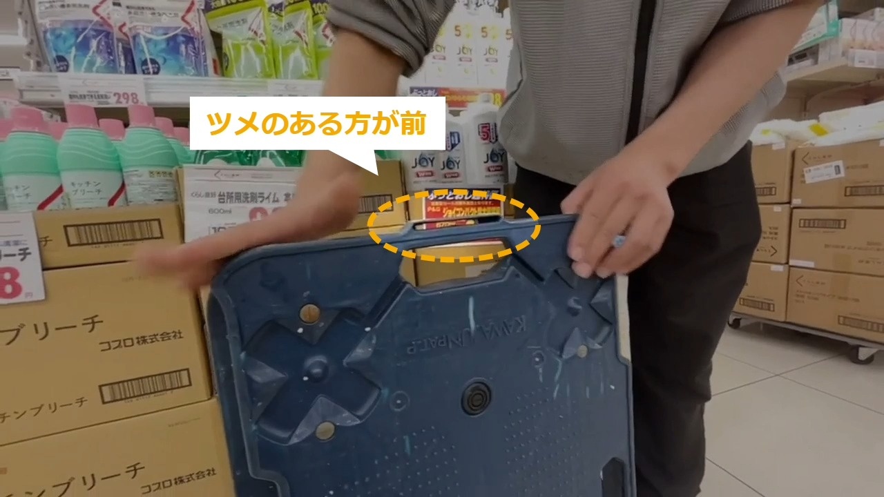 ミニキャリアの上に商品を陳列するときのルールを説明します。