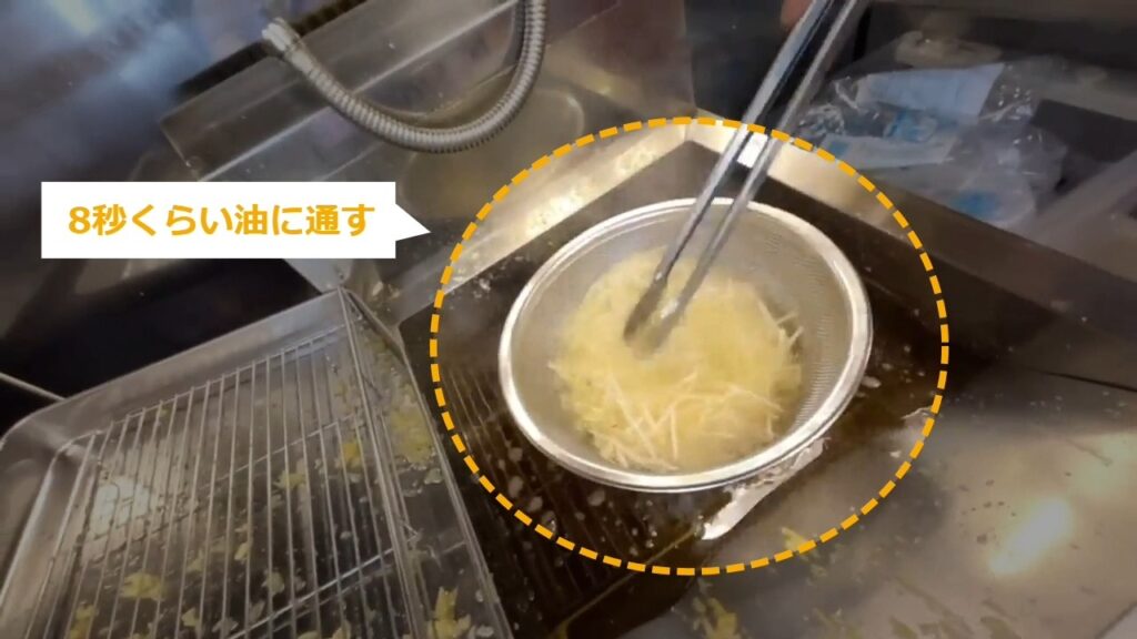 STEP9:ニラの油通し(2/3):油に3秒くらい通す