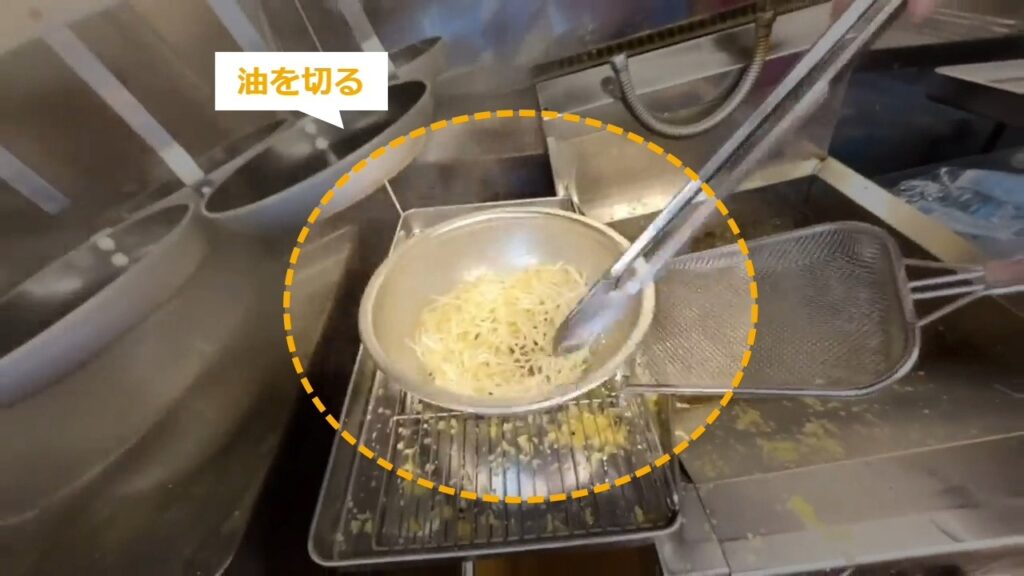 STEP13:モヤシの油通し(3/3):油を切る