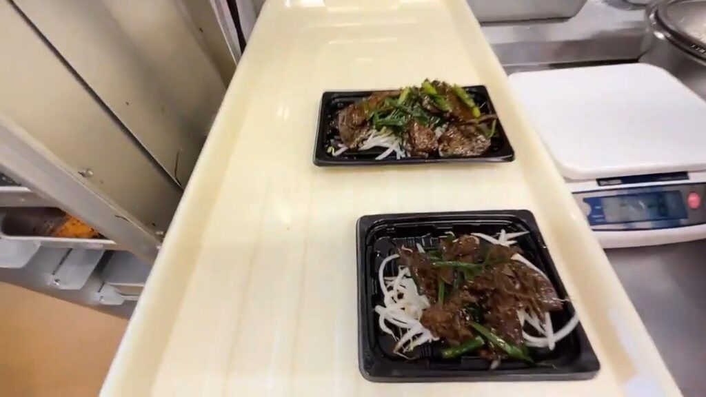 STEP21:レバニラ中の盛り付け(1/3):中トレイを載せる