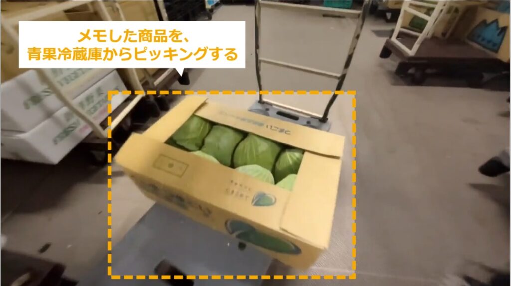 STEP5:メモした商品を、青果冷蔵庫からピッキングする