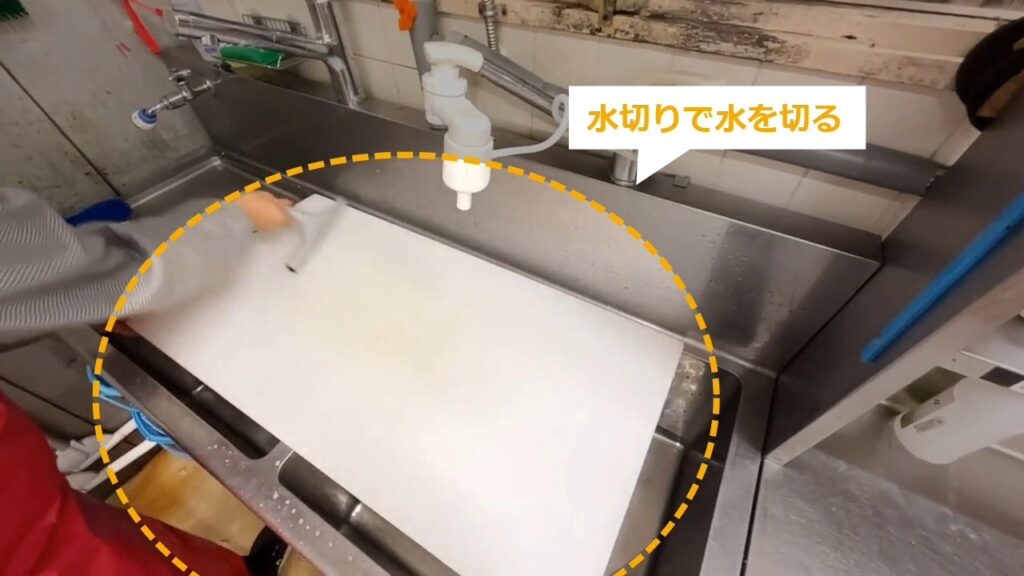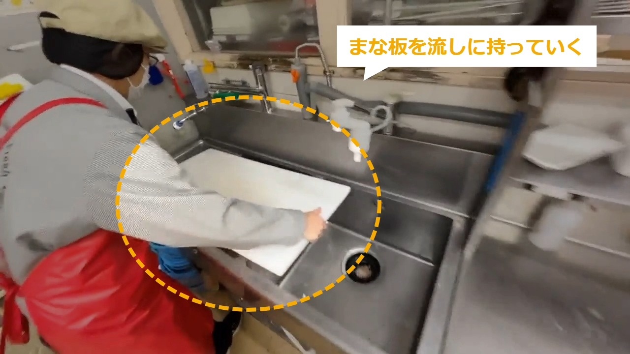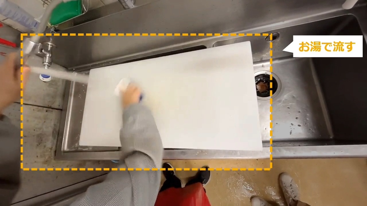STEP3:【通し動画】午前中作業終了時のまな板の洗浄