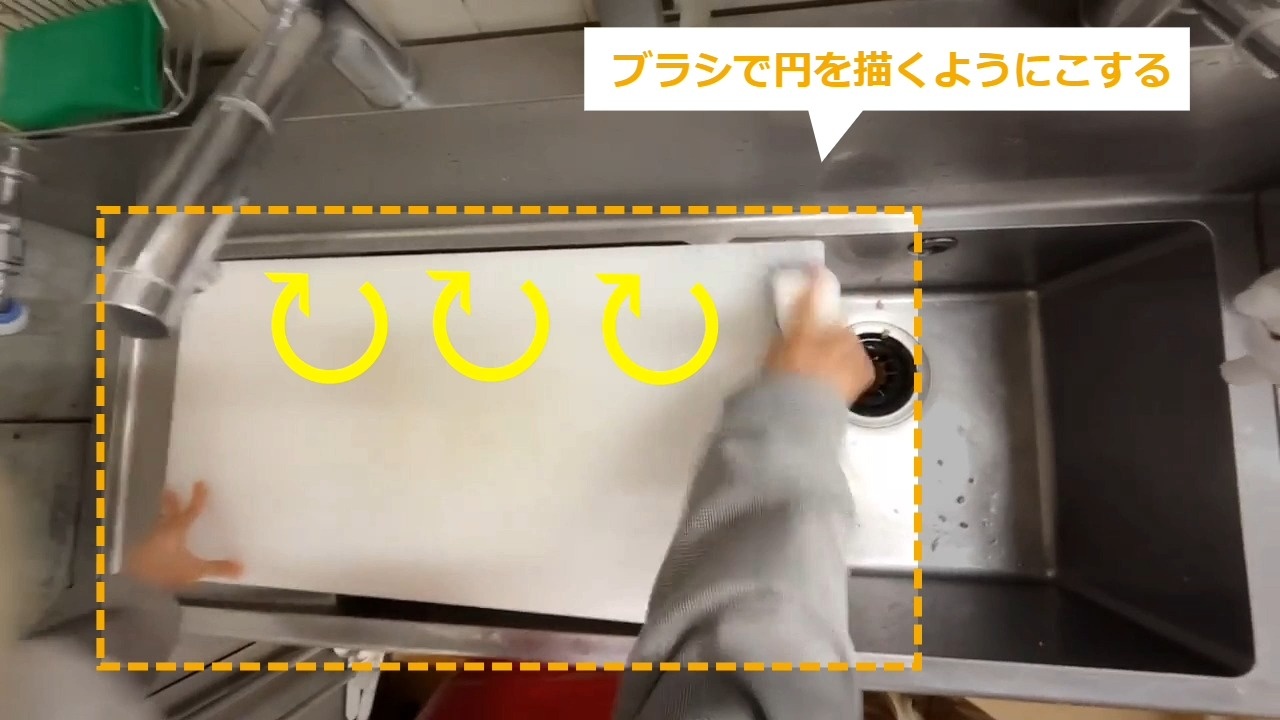 STEP7:まな板を洗う(3/6):ブラシでこする
