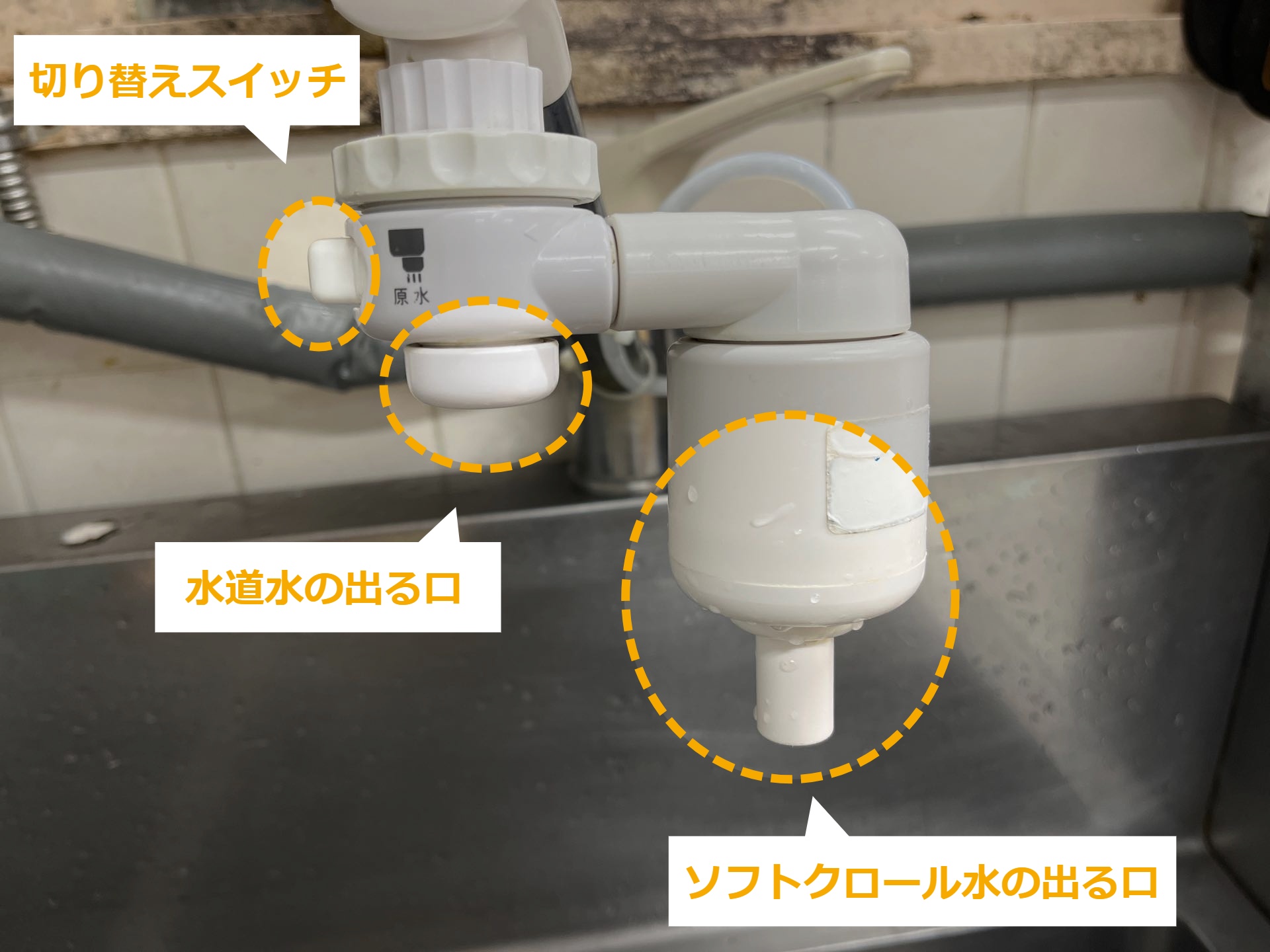 水道水とソフトクロール水をスイッチで切り替えることができます