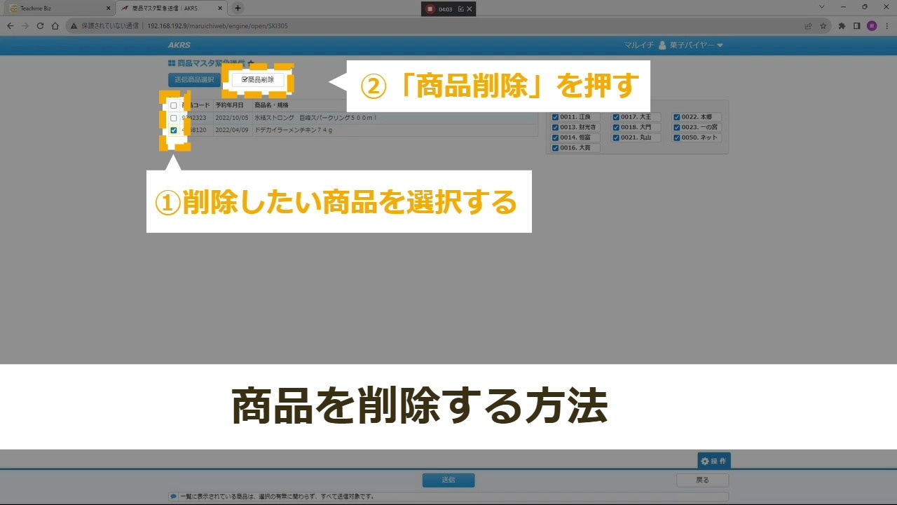 STEP9:「選択商品緊急配信」の仕方