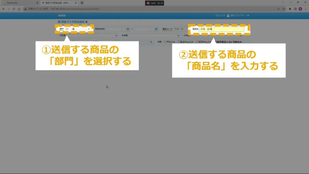 STEP11:送信する商品の部門選択と商品名入力