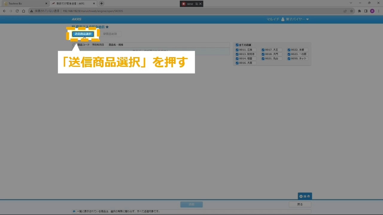 STEP10:「送信商品選択」を押す