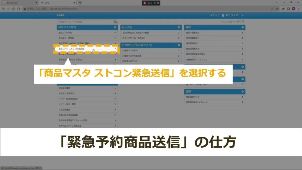 「商品マスタ ストコン緊急送信」を選択する