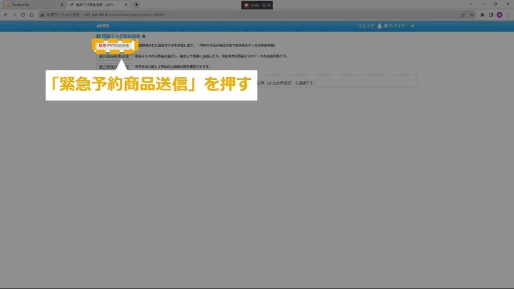 STEP3:「緊急予約商品送信」を押す