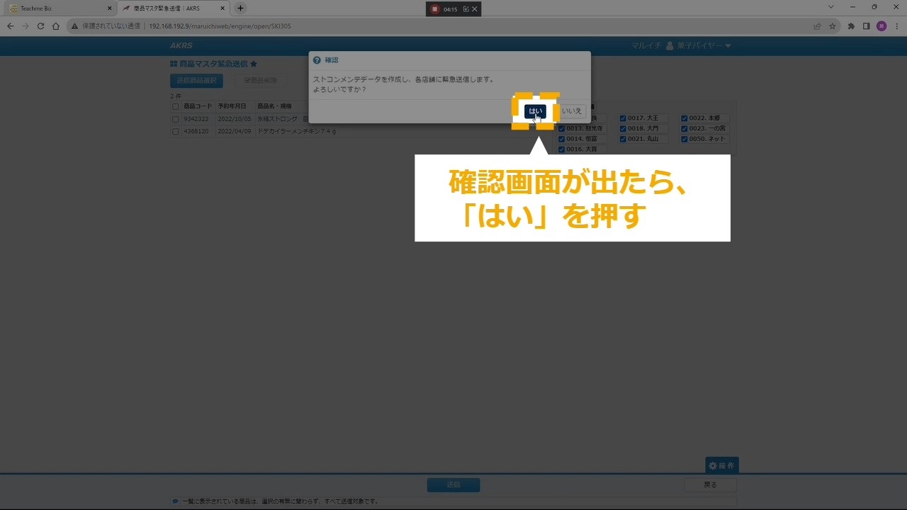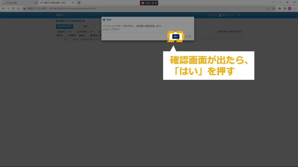 STEP18:確認画面が出たら、「はい」を押す