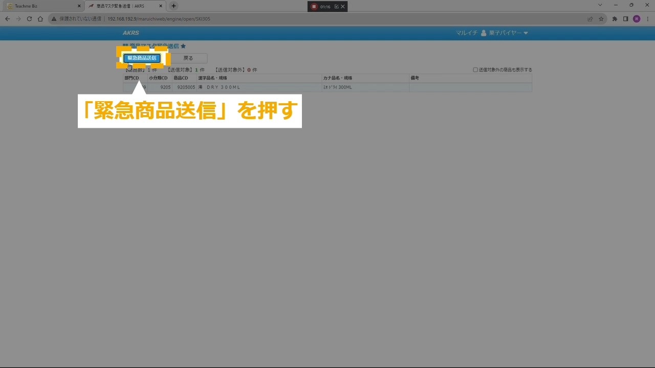 STEP4:「緊急商品送信」を押す