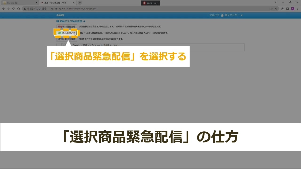 「選択商品緊急配信」を選択する