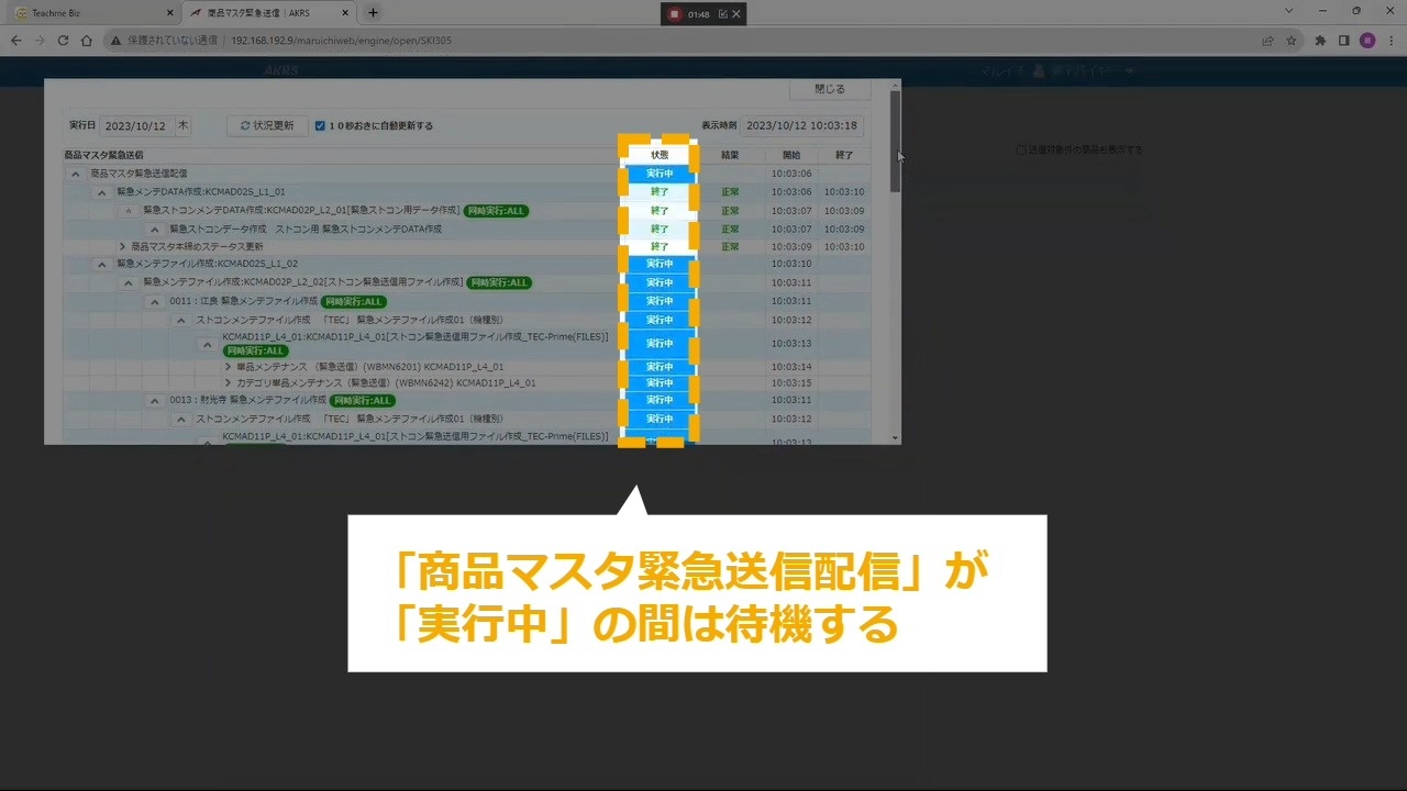STEP6:「商品マスタ緊急送信配信」が「実行中」の間は待機する
