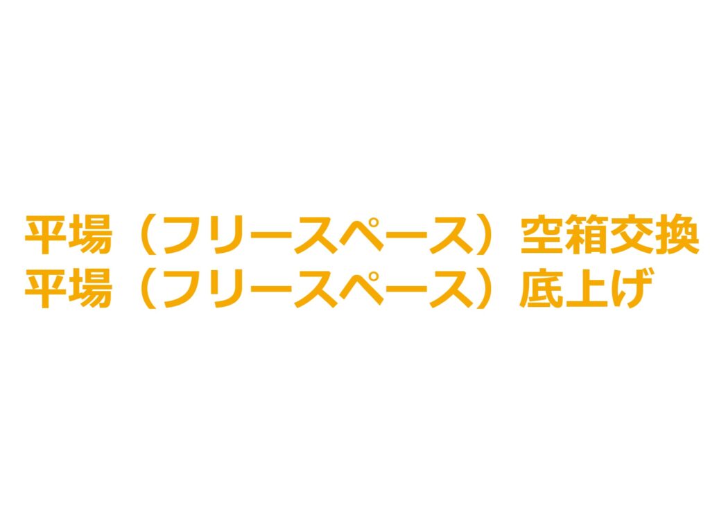 平場空箱交換と底上げ STEP1:平場空箱の交換 定番の商品を必ずチェックしてください。一番上の箱が一番新しい商品になるようにしましょう。商品の高さ、ダンボールのカット面の高さ、POPの高さを揃えましょう。 STEP2:平場の底上げ 注意点 必ず消費期限のチェックをしましょう。 このようにならないように、空箱交換の時に気をつけましょう。 STEP3:平場底上げ 正しいやり方 賞味期限の古い商品が上っ面にくるよう補充しましょう。定番が品薄になっていないか、必ず確認しましょう。
