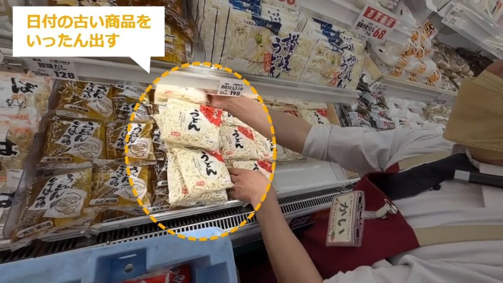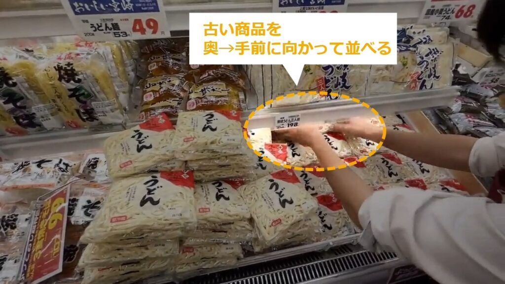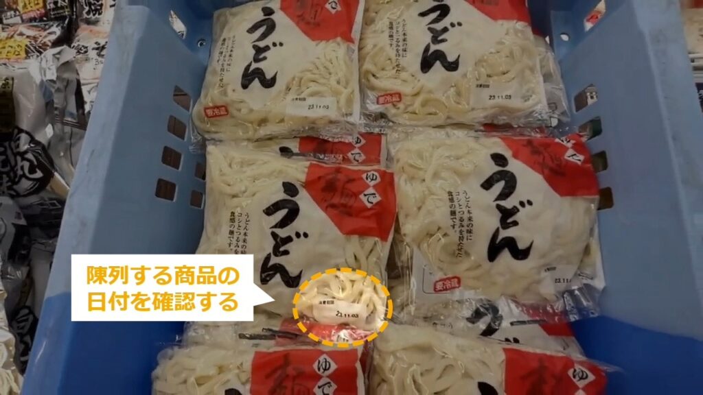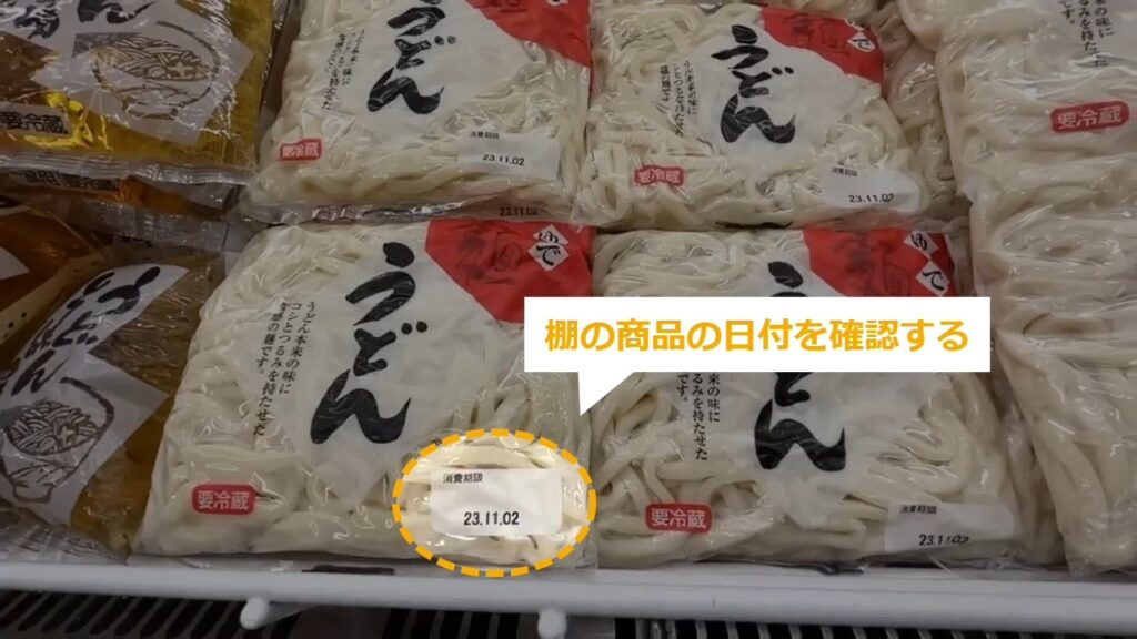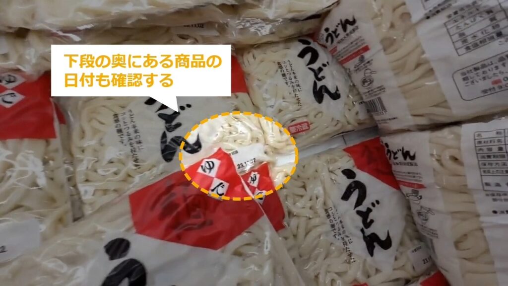 STEP2:棚の商品の日付を確認する(1/2):上段や手前の商品