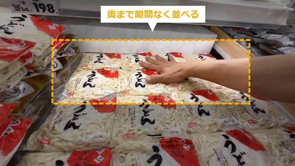 STEP9:新しい商品を並べる(2/2):奥まで隙間なく並べる