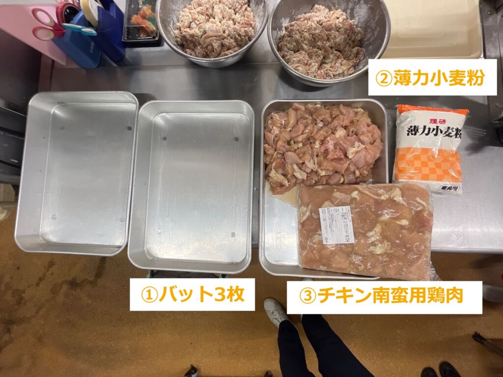 STEP3:チキン南蛮用の鶏肉をバットに入れる