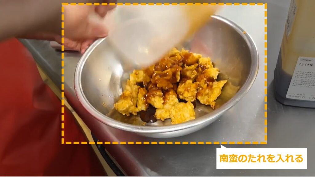 STEP22:【動画】揚げたお肉に南蛮酢を絡める