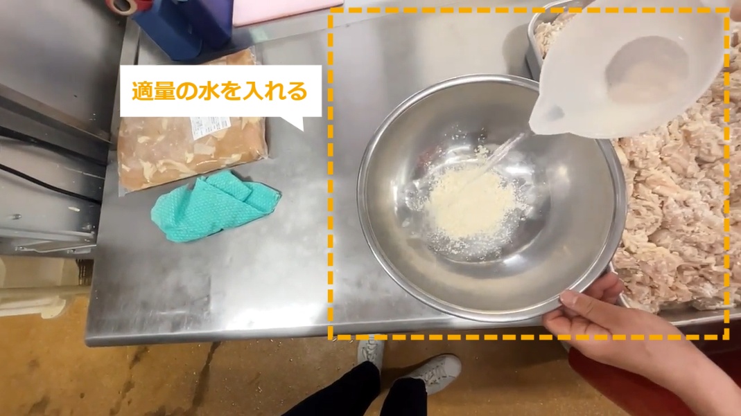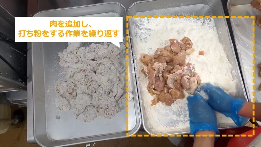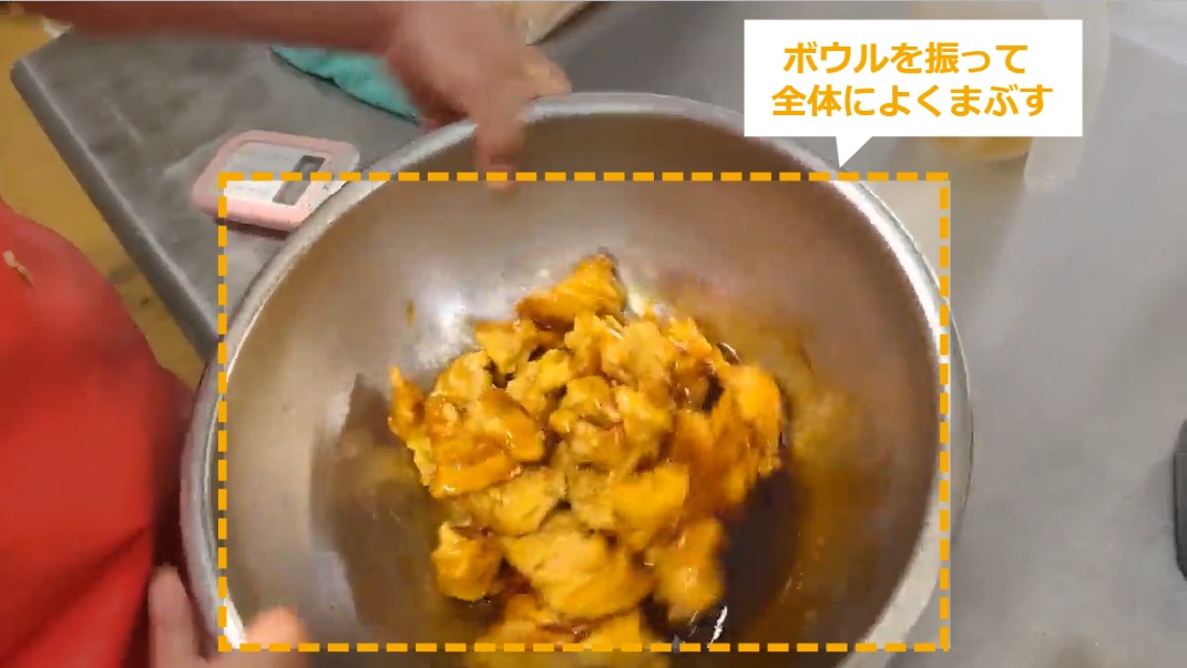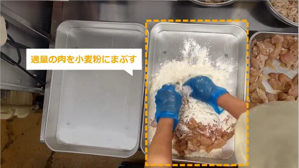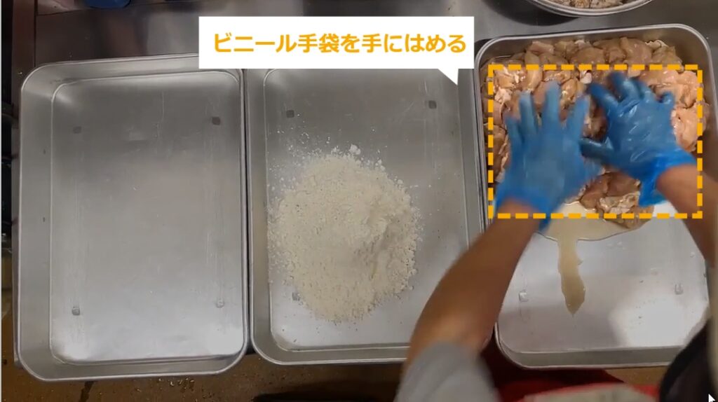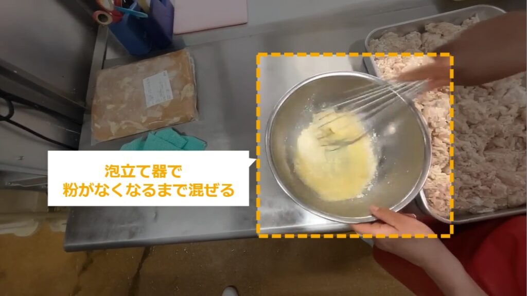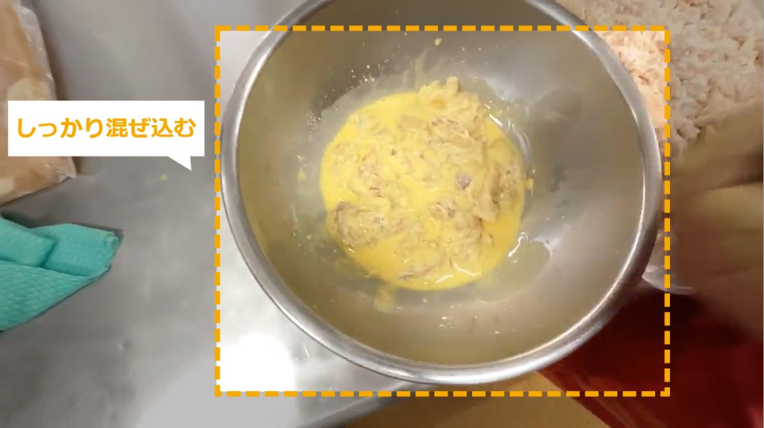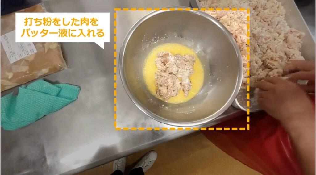 STEP9:【動画】お肉にバッター液をからめる