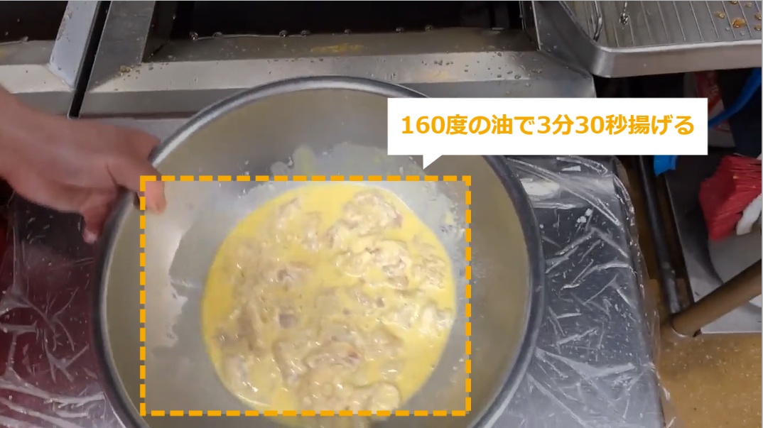 STEP15~18:160度の油で3分30秒揚げる