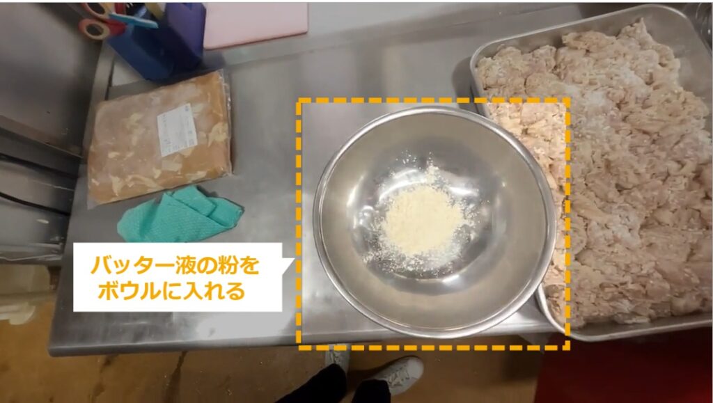 STEP10:バッター液の粉をボウルに入れる