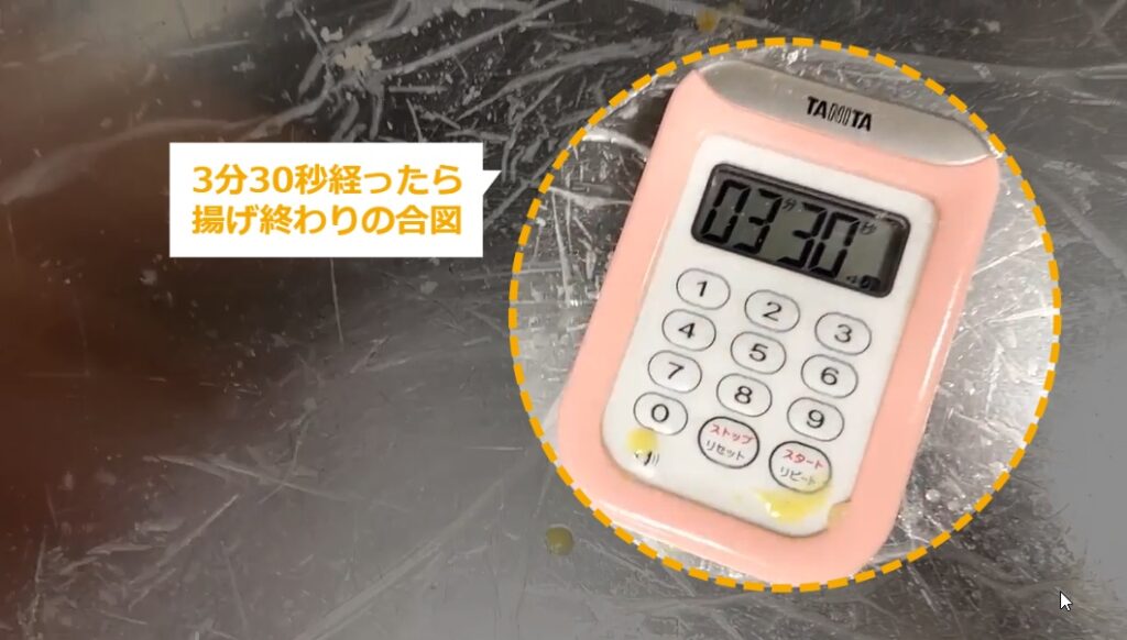 STEP20:3分30秒経ったら、揚げ終わりの合図